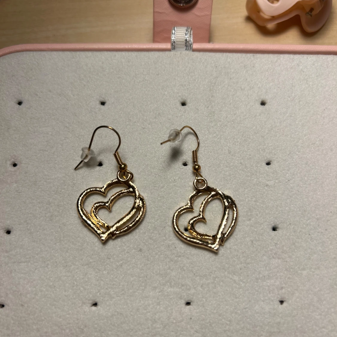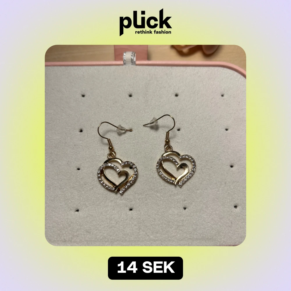 Jättefina guldiga hjärt örhängen med stenar. Oanvända💕