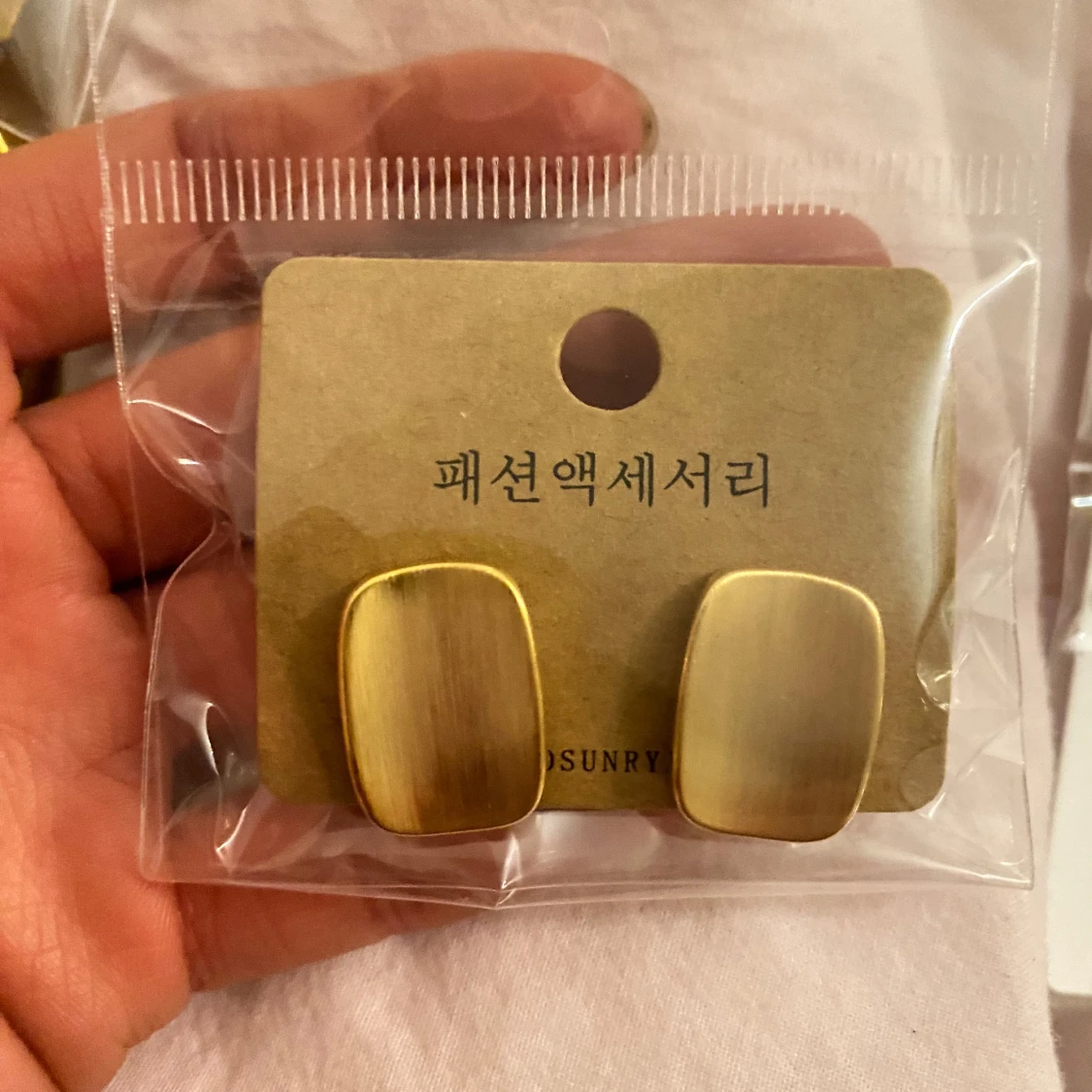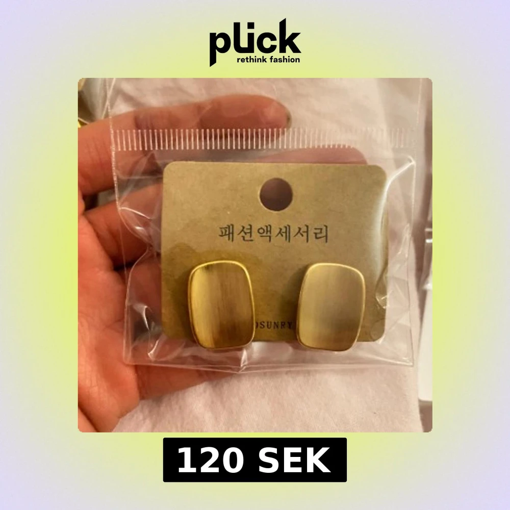Snygga och stilrena guldiga örhängen med en rektangulär form. Perfekta för att ge en elegant touch till din outfit. De har en matt finish som ger en modern känsla.