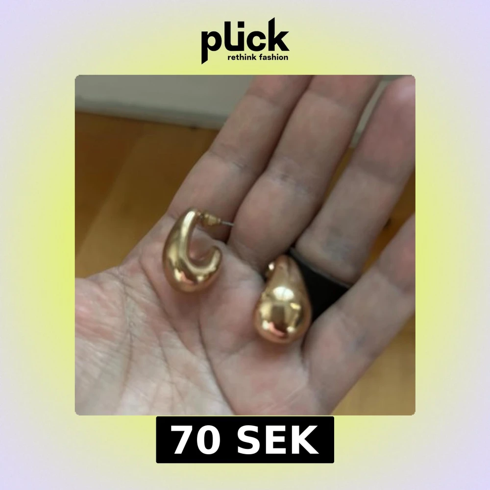 Säljer ett par eleganta guldiga örhängen i en stilren droppform. Perfekta för att ge en touch av glamour till din outfit. Lätta att bära och passar till många tillfällen.