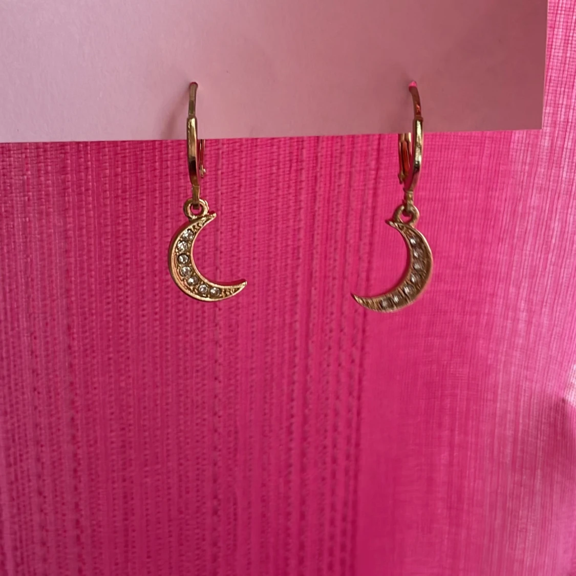 Snygga örhängen i guld med hängande månar dekorerade med små glittrande stenar. Perfekta för att ge din look en magisk touch.