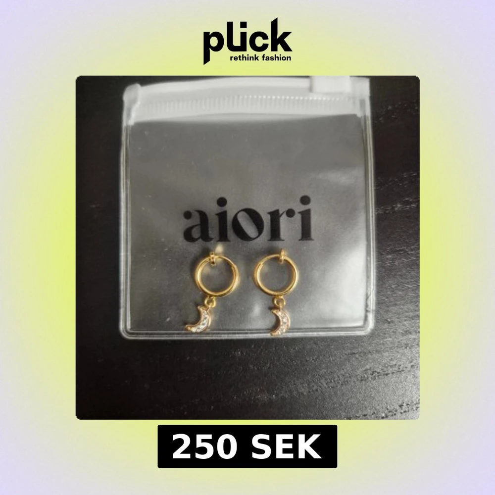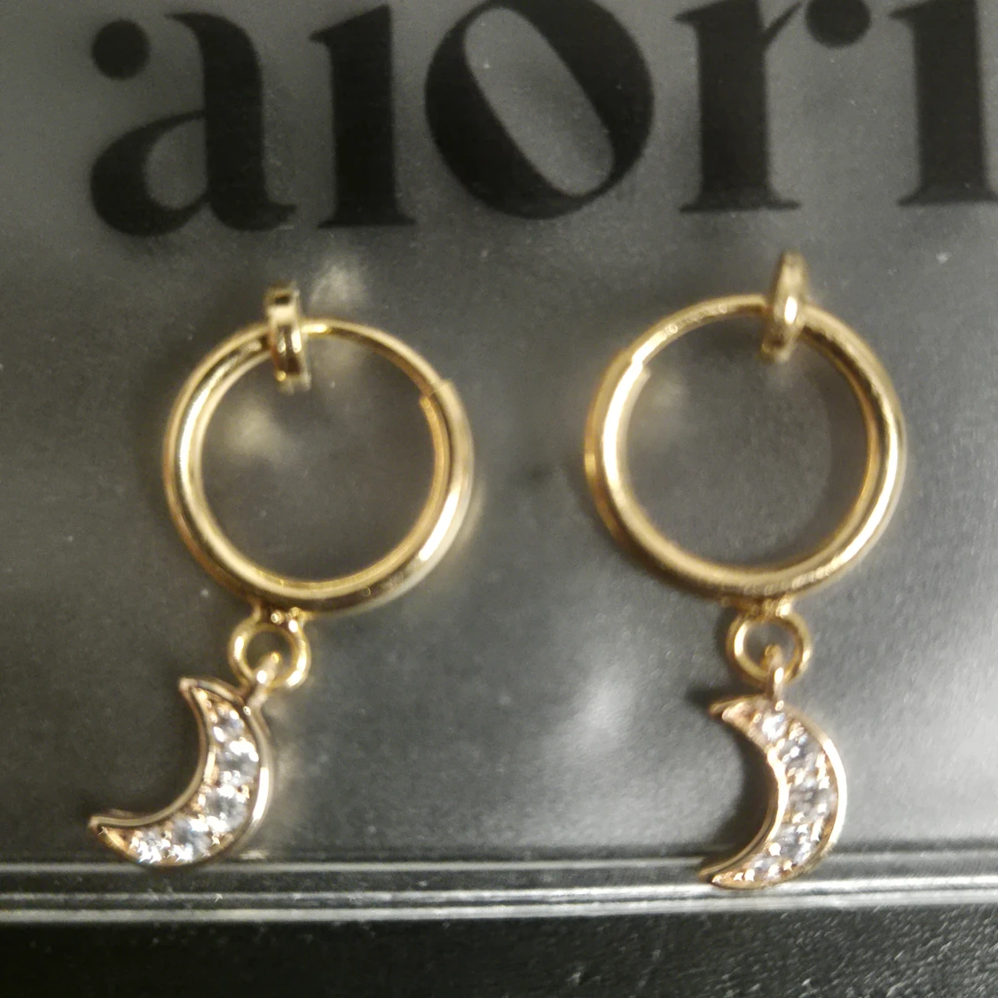 Söta guldiga örhängen för folk utan piercings från Aiori med små månar som hänger och är dekorerade med glittrande stenar. För tunnare öronlob.