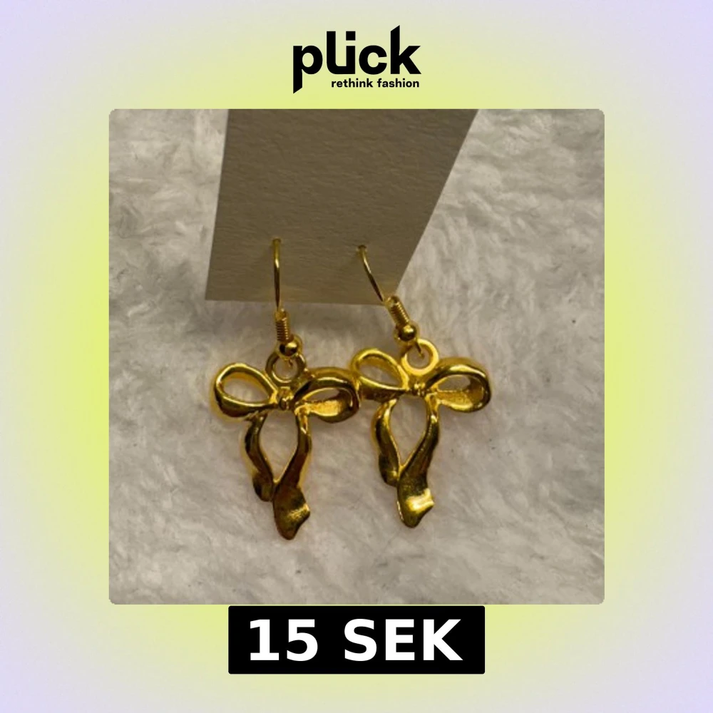 Säljer ett par snygga örhängen i guldmetall med en elegant rosettform. Perfekta för att ge din outfit en söt och trendig touch. Hängande modell med krokfäste. Krokarna är i sterling silver