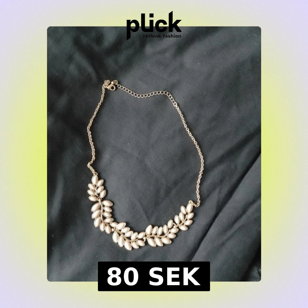 Snyggt halsband i guldton med dekorativa pärlor formade som blad. Kedjan är tunn och har ett justerbart lås. Perfekt för dig som gillar unika smycken med naturinspirerad design. Bladformen ger en cool och elegant vibe.