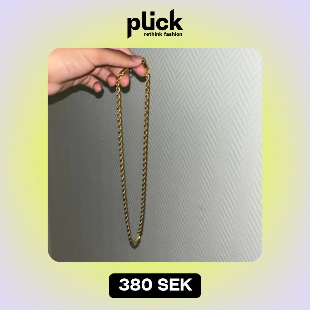Ett elegant guldpläterat halsband med en vriden kedjedesign. Halsbandet har en klassisk och tidlös stil som passar för olika tillfällen.