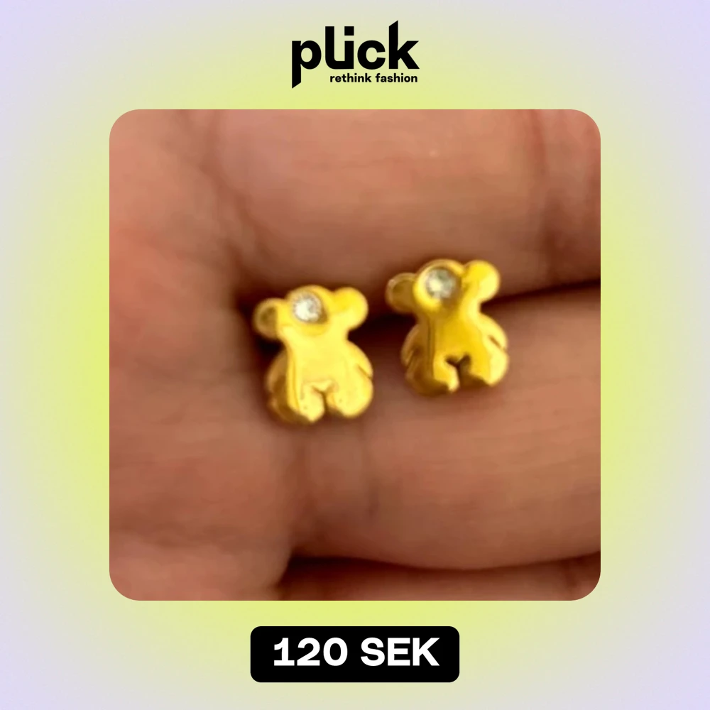 Söta små örhängen i form av nallebjörnar i guld.( stål ) Varje örhänge har en glittrande sten som ger en extra touch av elegans. Perfekta för att lägga till lite lekfullhet till din outfit!