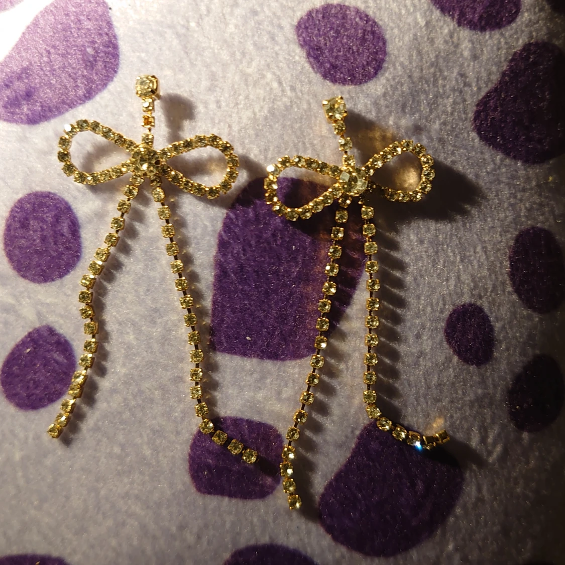 Eleganta guldörhängen formade som rosetter med glittrande detaljer. Perfekta för att ge en extra touch av glamour till din outfit. Oanvända, nya.