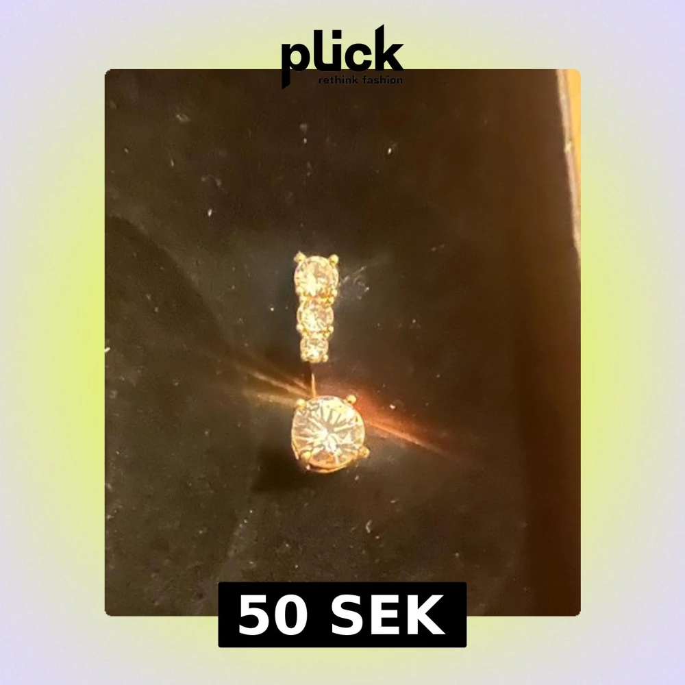 Snygg navelpiercing i guldpläterad metall med två glittrande klara kristaller. Den övre delen har två mindre stenar och den undre en större rund kristall som fångar ljuset. Perfekt för dig som vill ha lite extra bling på magen.