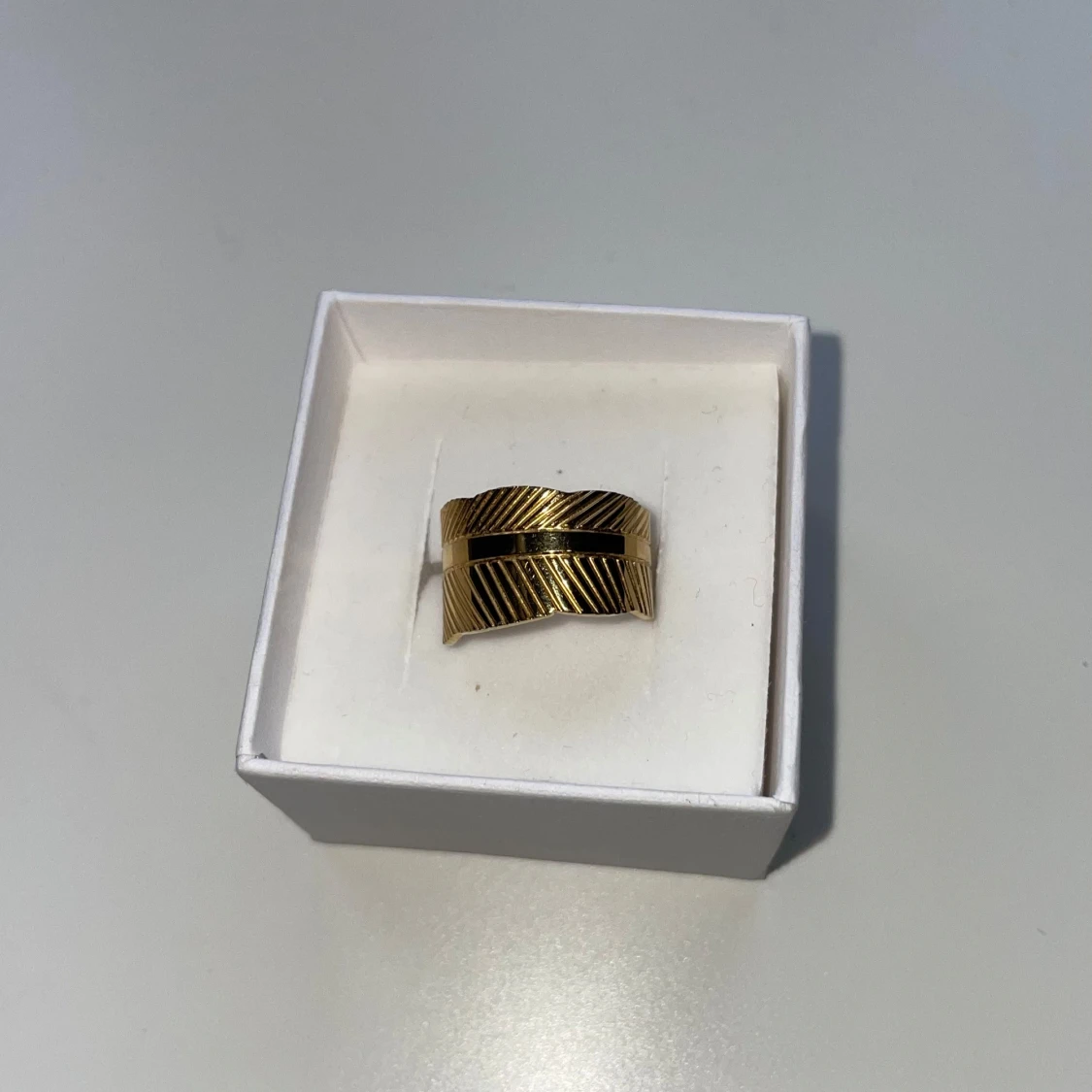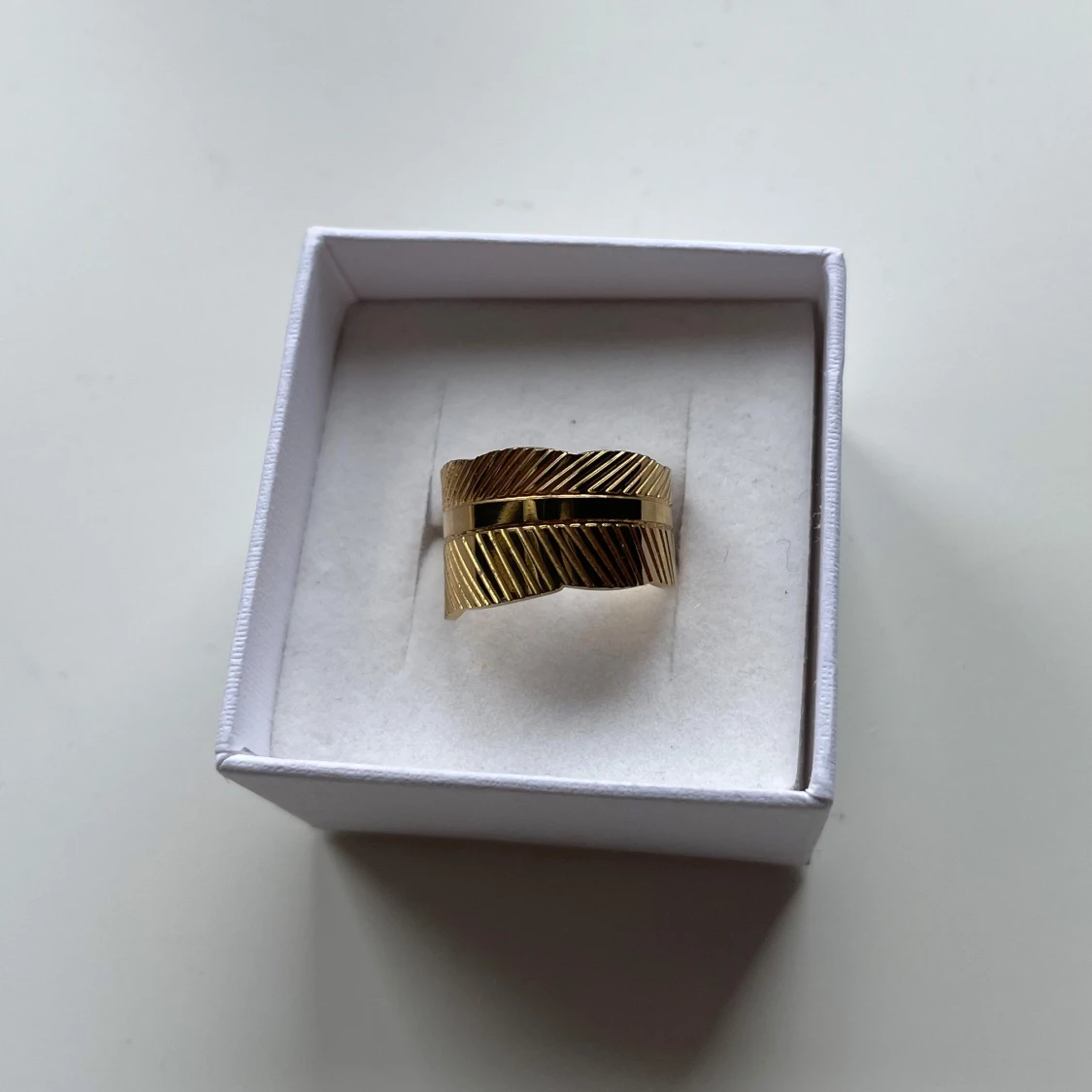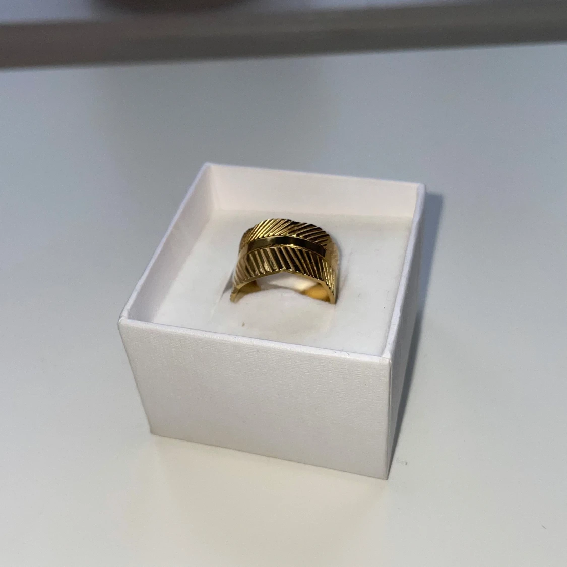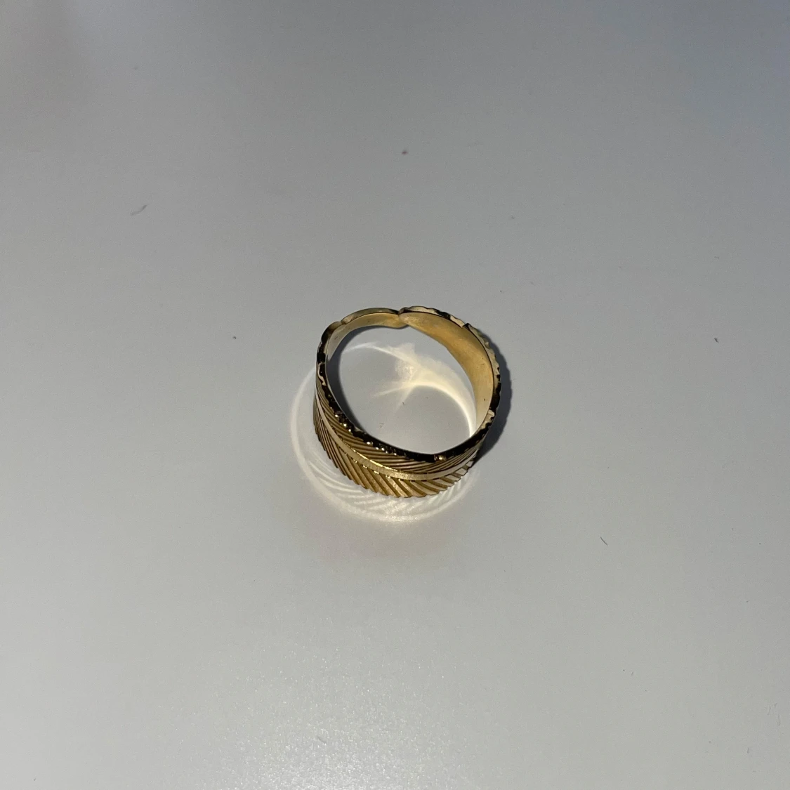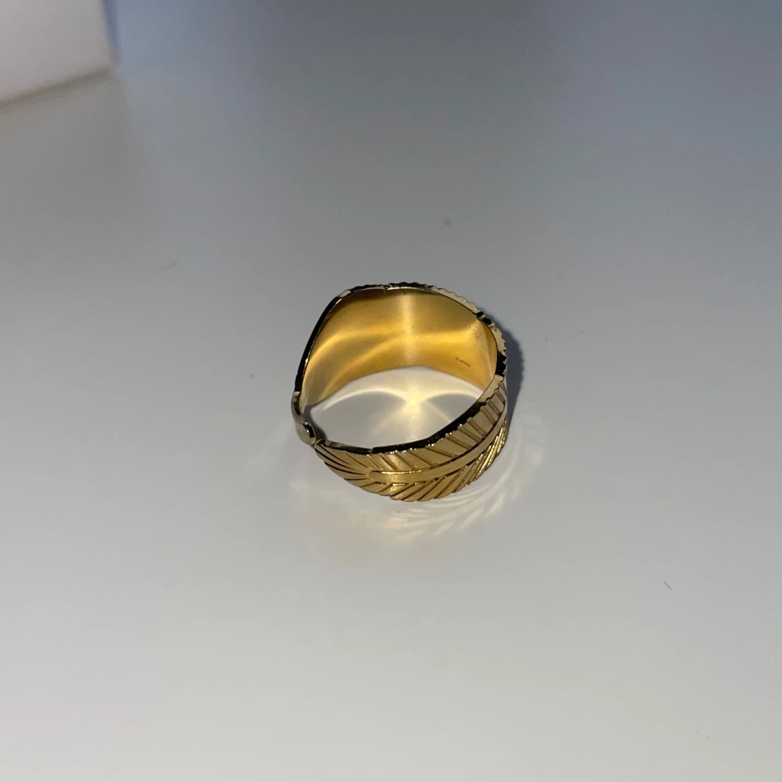 Säljer denna blad-illustrerade guldringen som jag löpte i en butik i Spanien för den fina damen som sålde va så söt. Sen använder ju jag silver så blev lite krock där, men fin är den så önskar att någon annan kan använda den åt mig!🫶