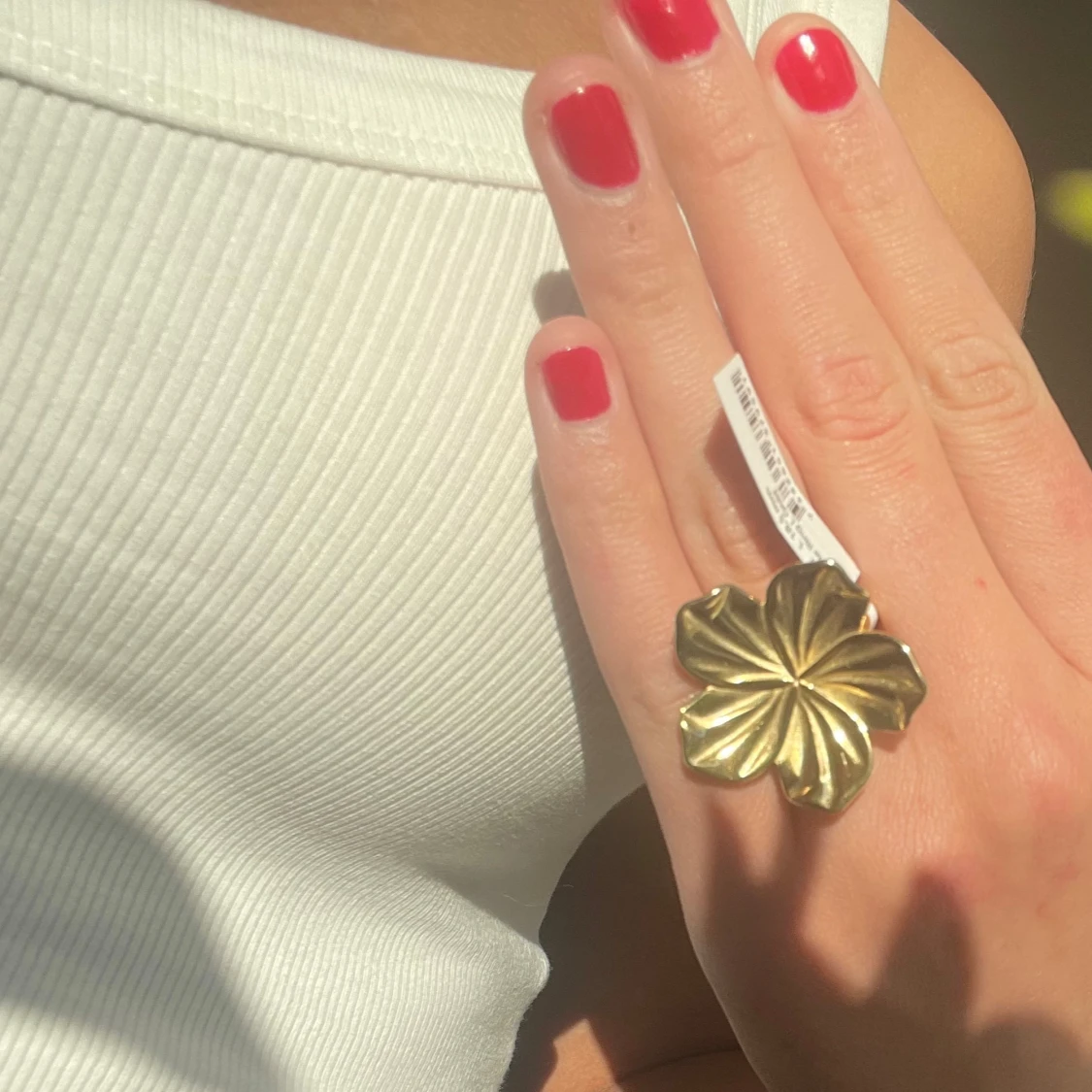 Cool guldfärgad ring från Edblad med en stor, detaljerad blomma som sticker ut och ger en statement-look. Perfekt för dig som gillar att sticka ut och vill ha något unikt på fingret. Den ör helt ny och ifrån Edblad