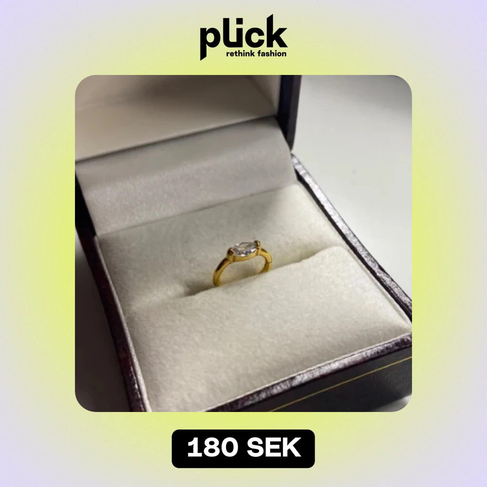 Guldring med oval kristall