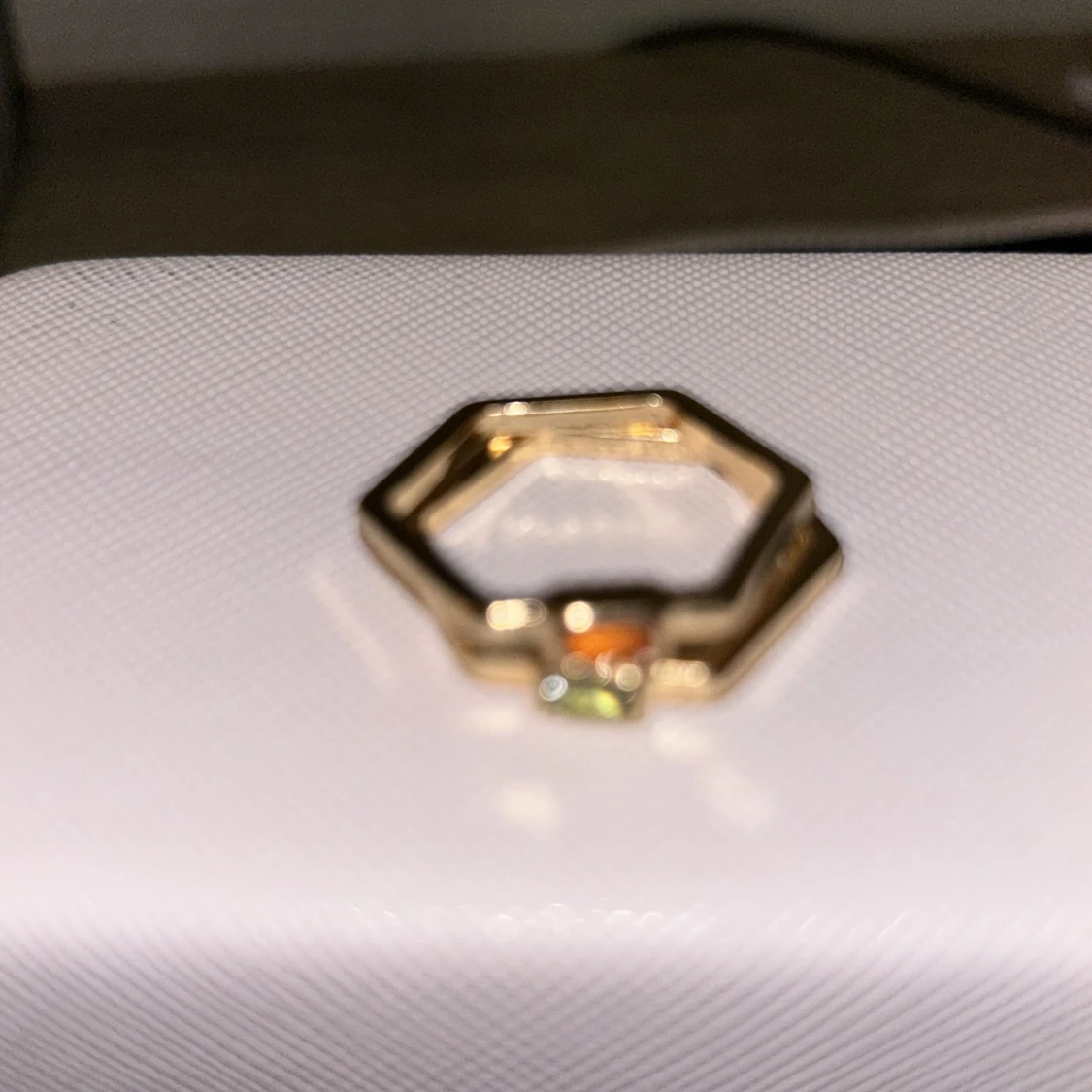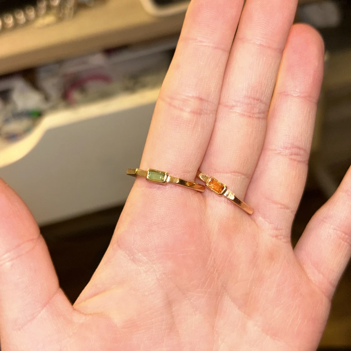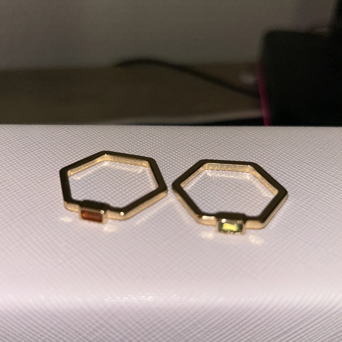 Två guldringar med kristaller i