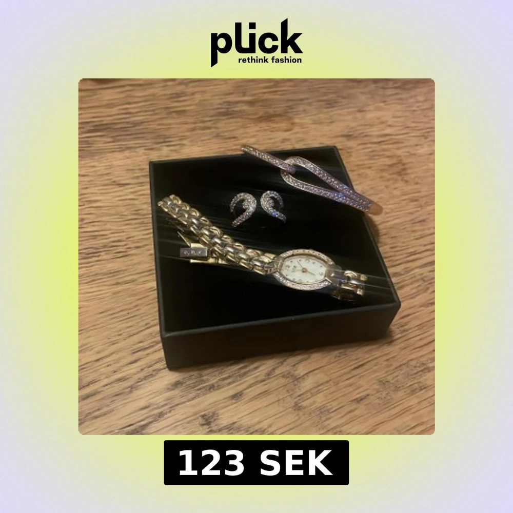 Elegant guldfärgad klocka från o.n.e med glittrande stenar runt urtavlan ( ingen batteri). Ringen by joolin köpt för 499 helt ny bara testad. Armband guld med stenar. Sååå så snygga.❤️