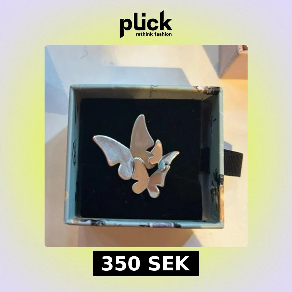 jättegullig fjärilsring från ioaku!!! inga defekter på självaste fjärilarna men lite av färgen har lossnat från biten runt fingret💕orginal priset 500 mitt pris 350kr för defekten
