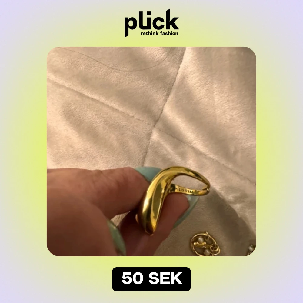 Säljer en snygg och modern guldfärgad ring från Pilgrim. Ringen har en unik, böjd design som verkligen sticker ut. Perfekt för att ge din outfit en extra touch av stil! köpte för 450