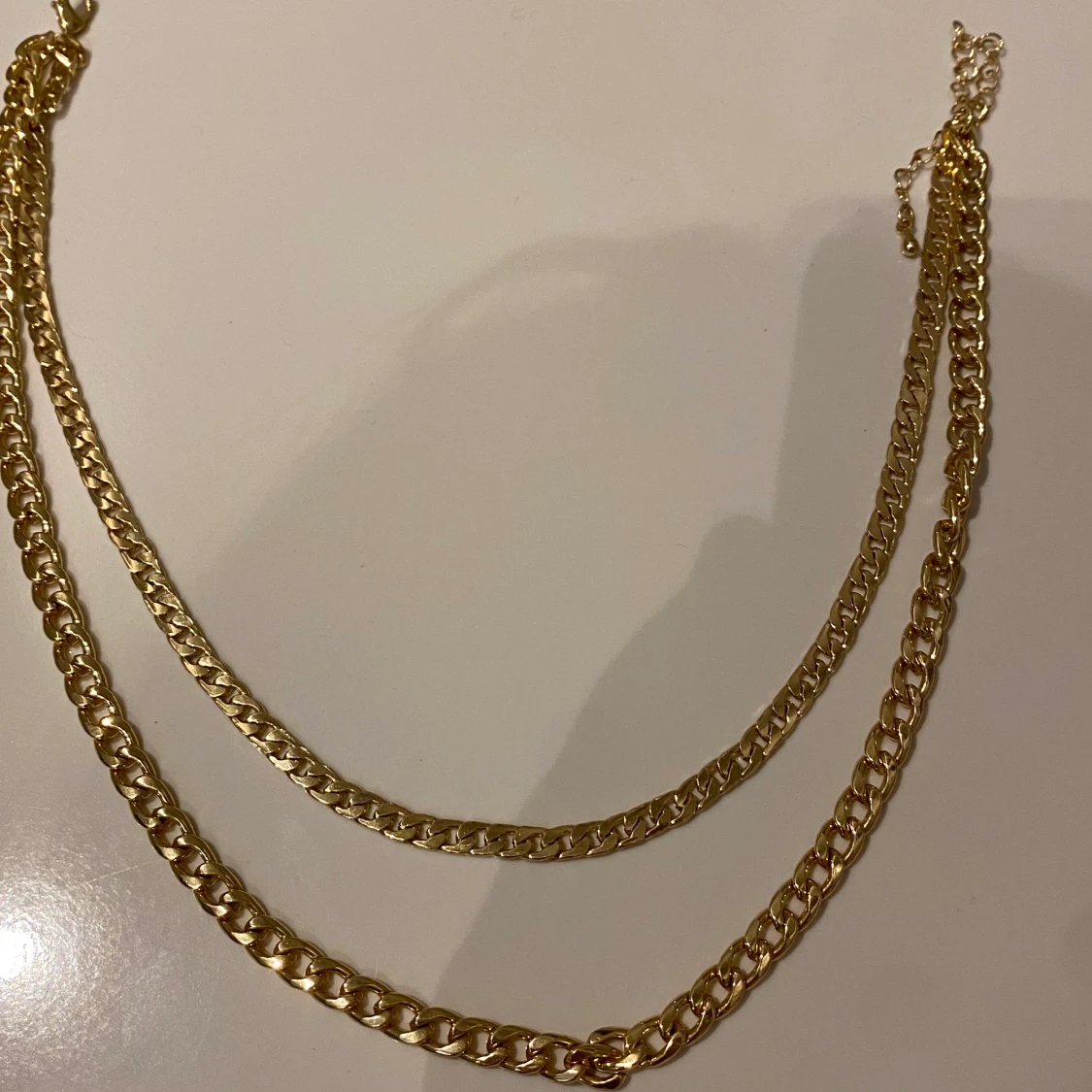 Halsband som består av 2 guldkedjor! Användt enstaka gång!✨