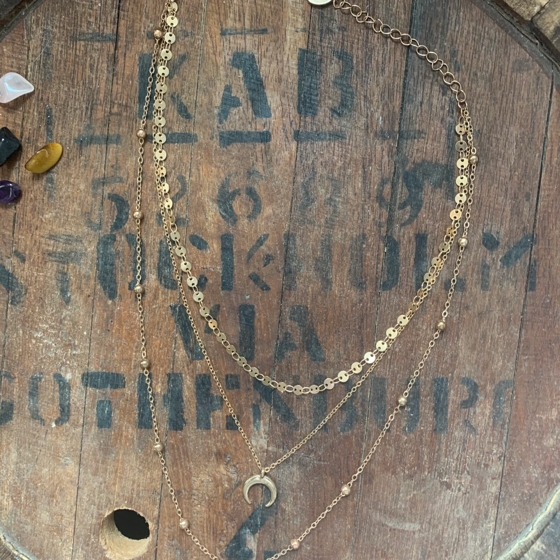 så så så fint guldfärgat halsband med tre kedjor!! hör jättegärna av dig vid intresse💘