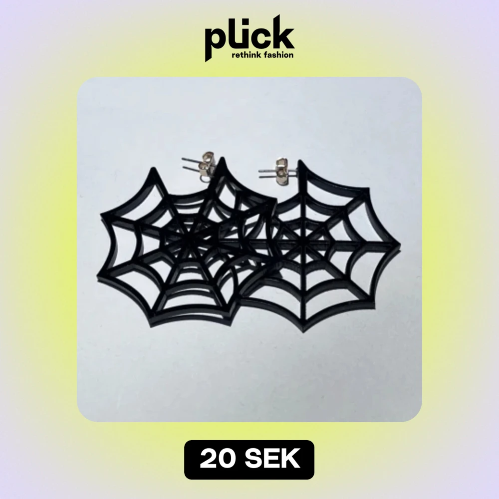 ett par svarta spindelnät örhängen i plast! 🕸️de är ungefär 5,5cm långa och är köpta från h&m tror jag