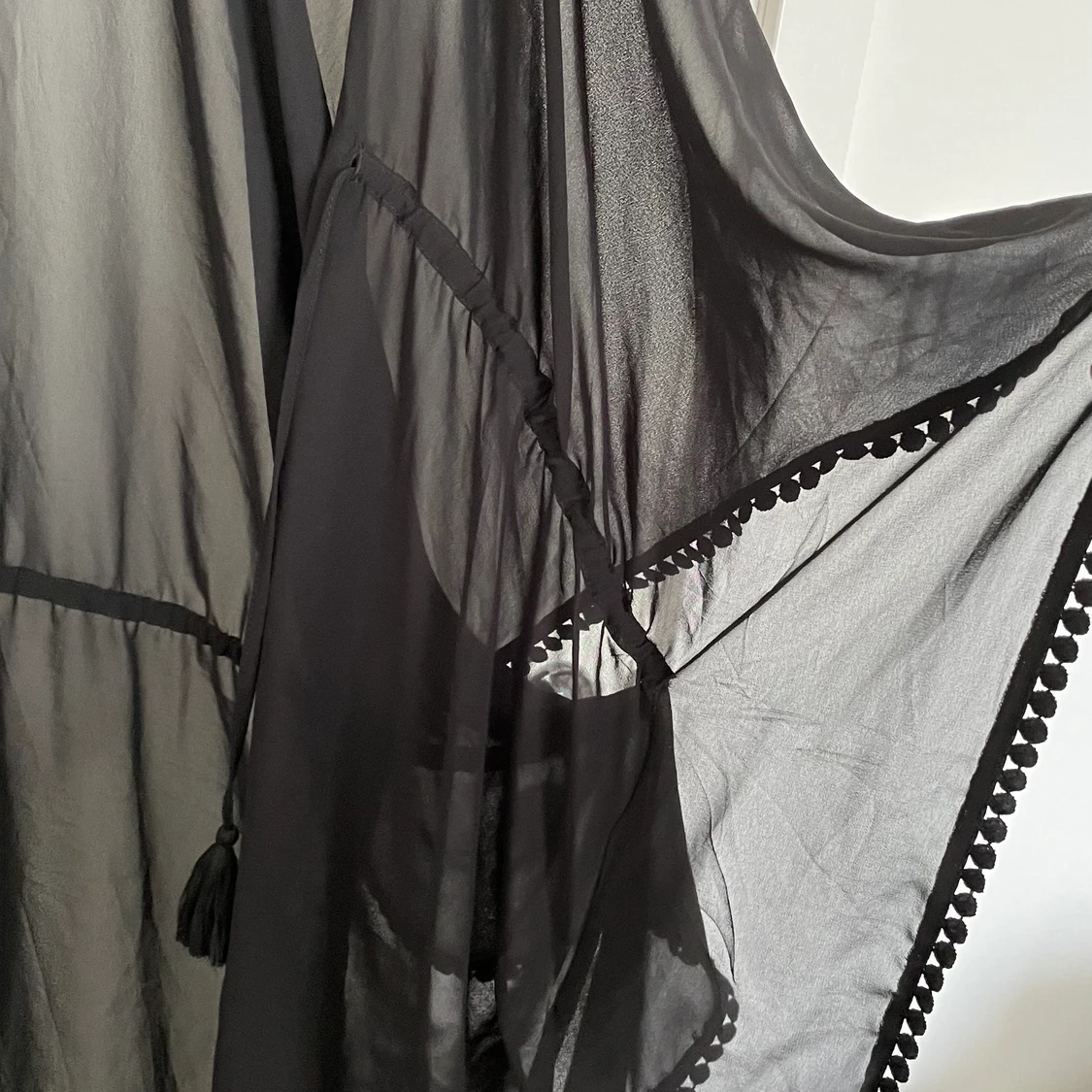 Kimonon har stora ärmar och kan knytas i midjan för en looks som smickrar din figur. Dessutom är den luftig och passar perfekt till sommaren. Använt 1-2 ggr. Köpte den för 399 men säljer för 200kr