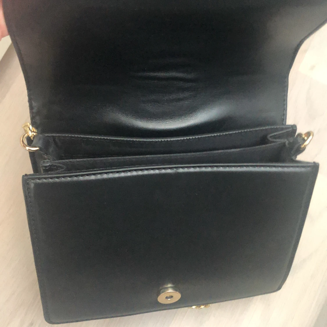Svart väska i PU Med guldkedja. Endast använd en gång så är i nyskick.