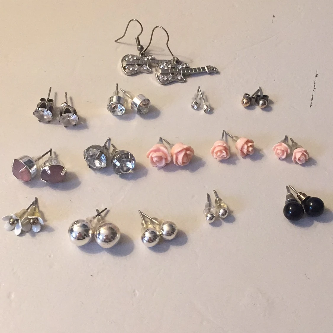 De är från lite olika märken, men främst från hm. Knappt använda:) frakten är 12:- och jag tar emot swish:) kolla in min profil för mer coola örhängen och annat+kläder till ett bra pris!:)