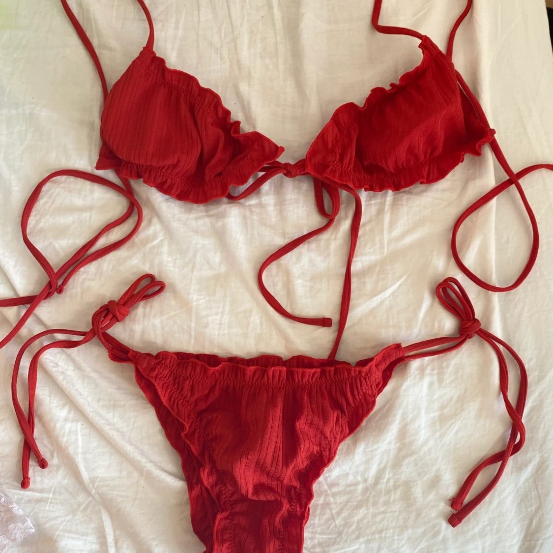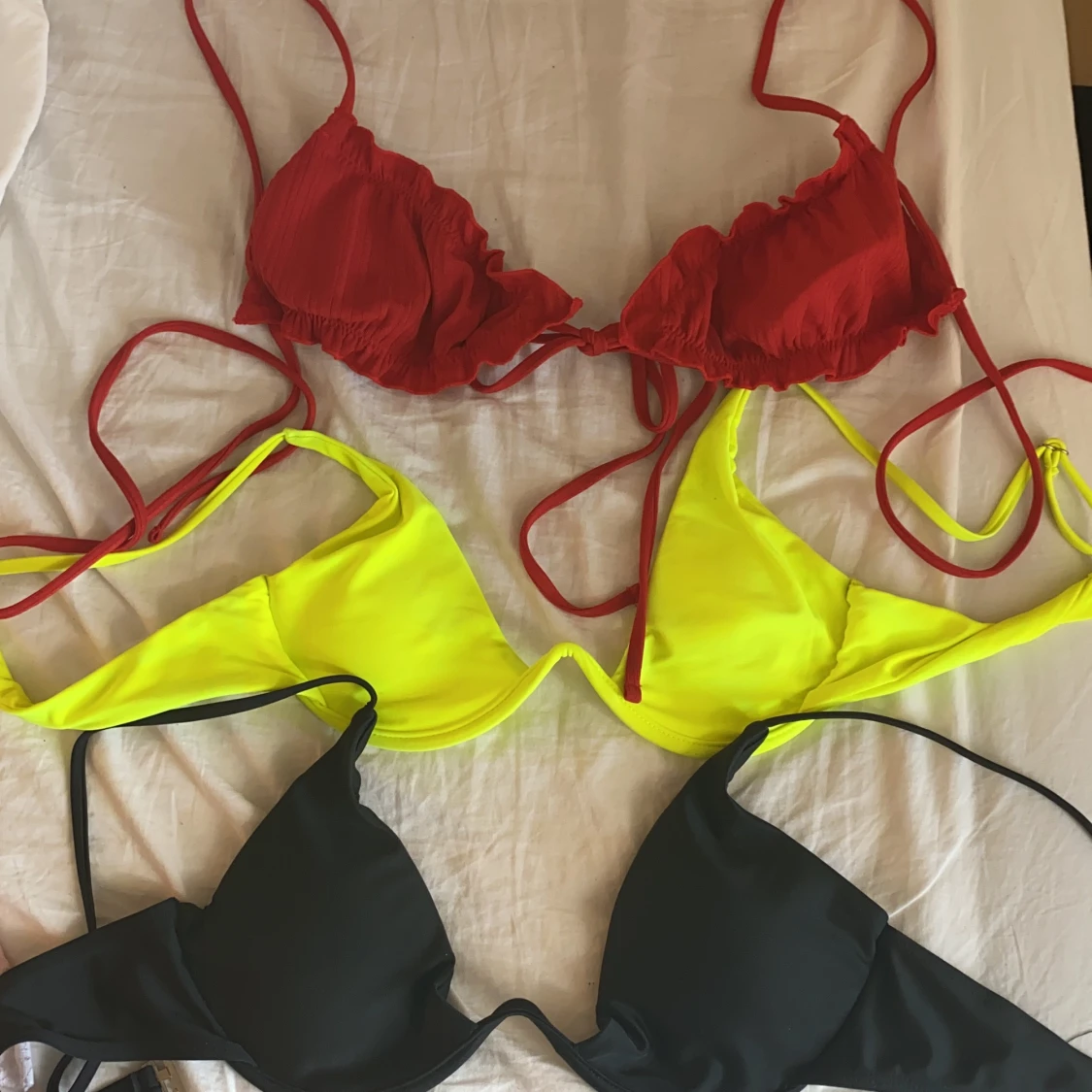 Röda 129kr oanvänd, passar S. Grön och svart överdel 99kr/st alla är oanvända!!! Svarta är såld!