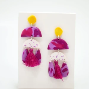 Egentillverkade örhängen. Finns i många olika färger, varje par är unikt då dom är handgjorda. ✨💜 (Ej från h&m, var tvungen att välja märke) Det ingår två gummipluppar till baksidan av örhänget.