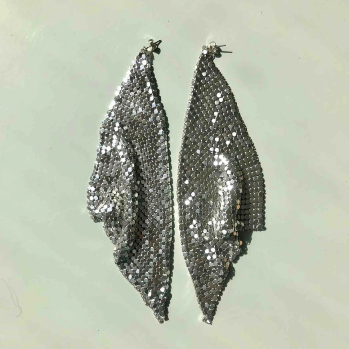Stora partyörhängen, silvriga. Använda en gång. Kan mötas upp eller skicka för 15kr.😊