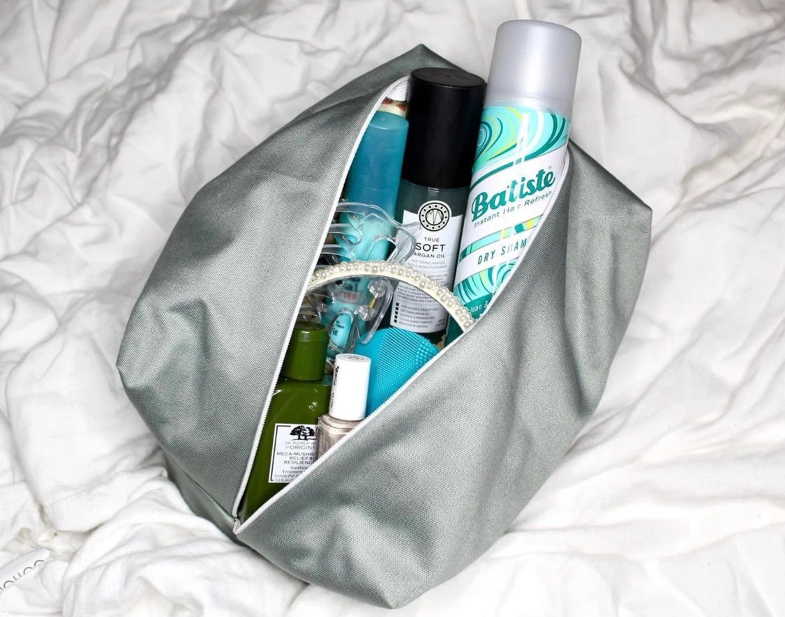 Stor Grågrön Necessär med 1 blommig & 1 blå satin insida🪩💚