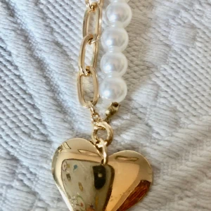Har aldrig haft på mig den , den är helt ny. Den är 26cm lång och själva kedjan/ pärlorna är en halv cm! Ena sidan är gjord av pärlor och den andra av kedja! Jag vet inte hur mycket den kosta när jag köpte den för att jag köpte den i en Ur & Penn mystery