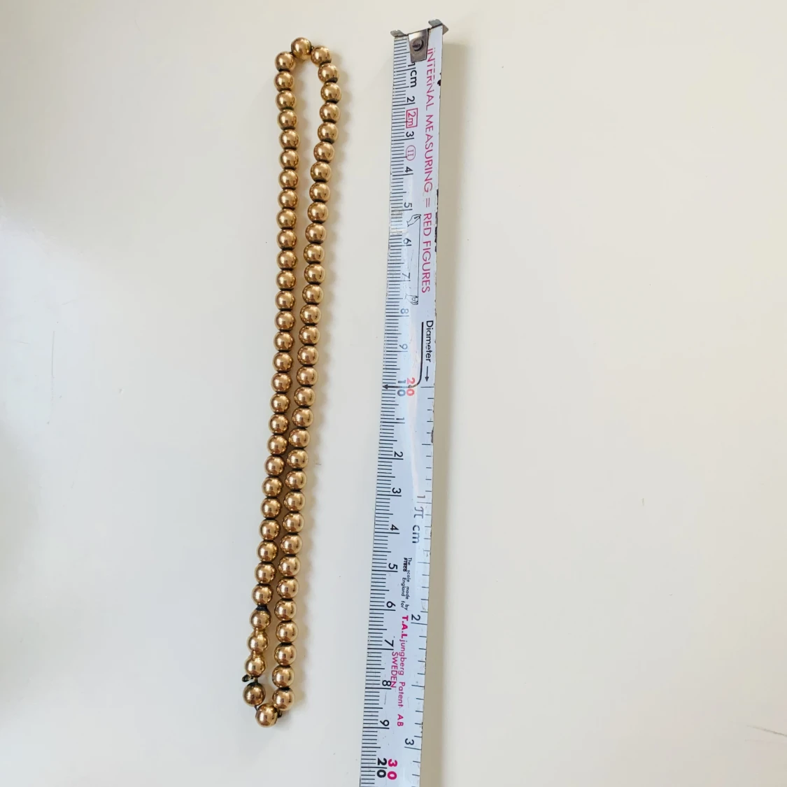Vackert halsband med guldfärgade pärlor Okänt material