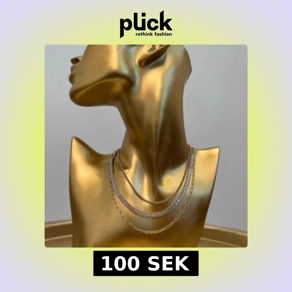Snyggt tredelat halsband i guldfärg med olika kedjor – en med glittrande stenar, en tunn kedja och en med större länkar. Perfekt för att ge din outfit extra edge och stil. Passar dig som gillar att mixa och matcha smycken.