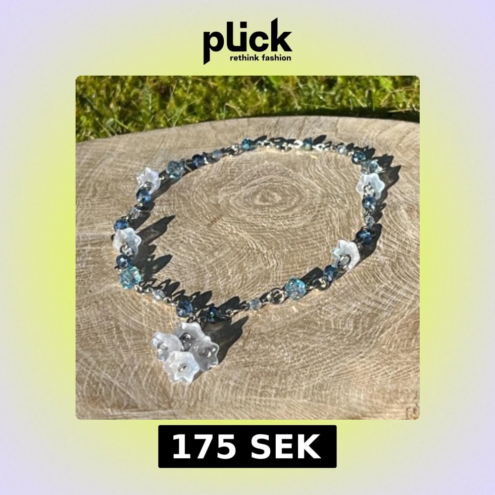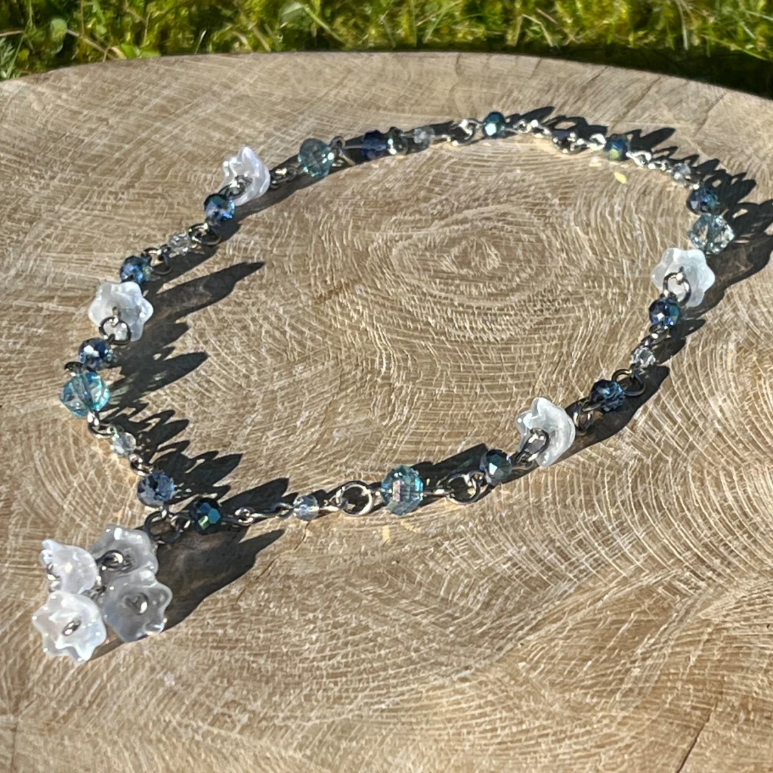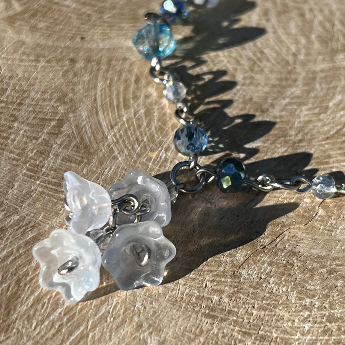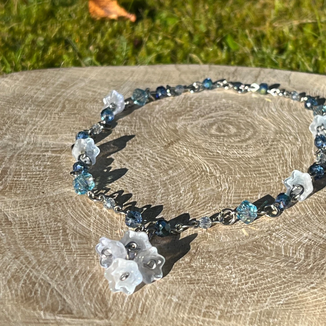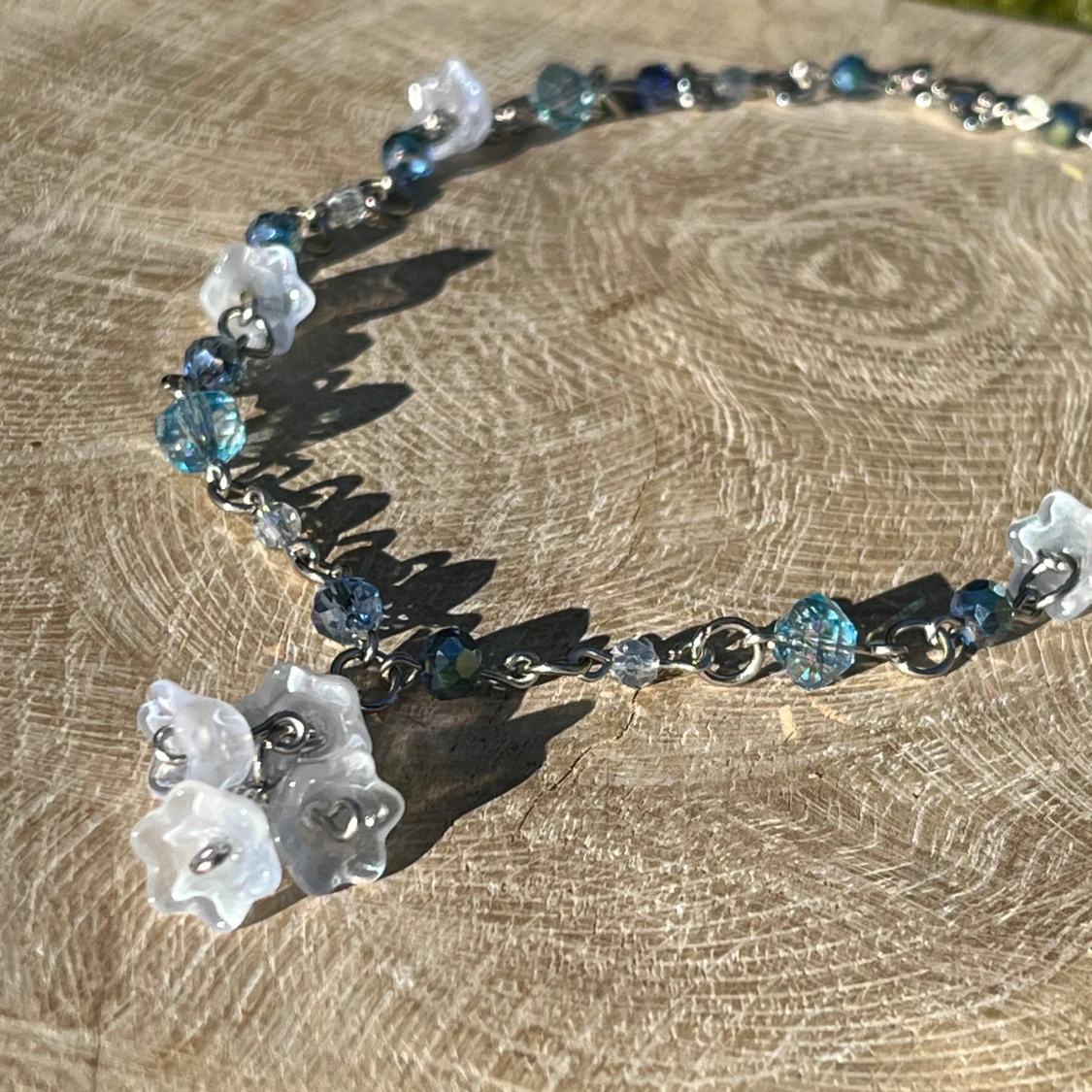 🩵🦋Vackert halsband av blå glaspärlor och rostfritt ståltråd🦋🩵 🌸Finns matchande i rosa🌸