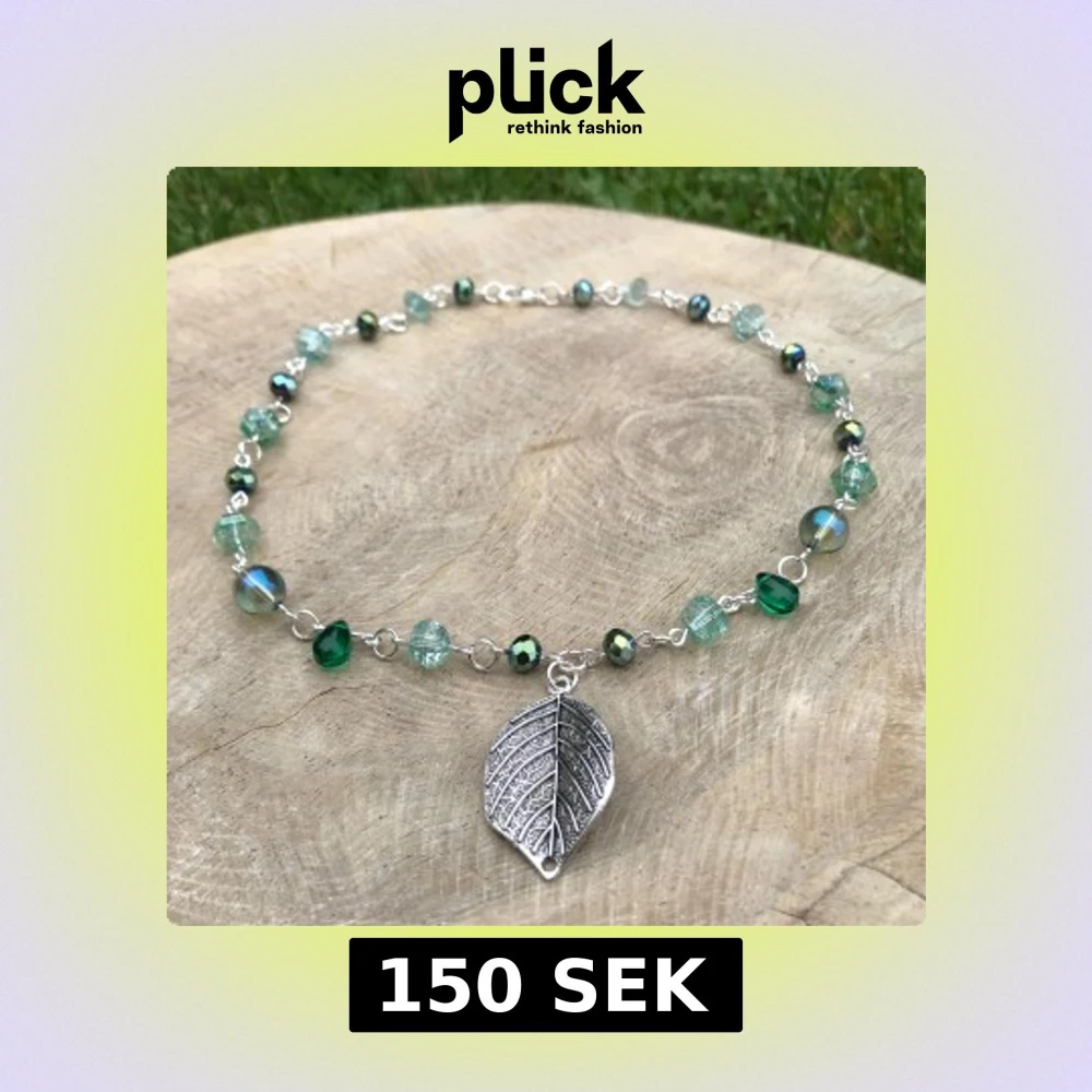 Vackert halsband av gröna glaspärlor och silver berlock 🍃