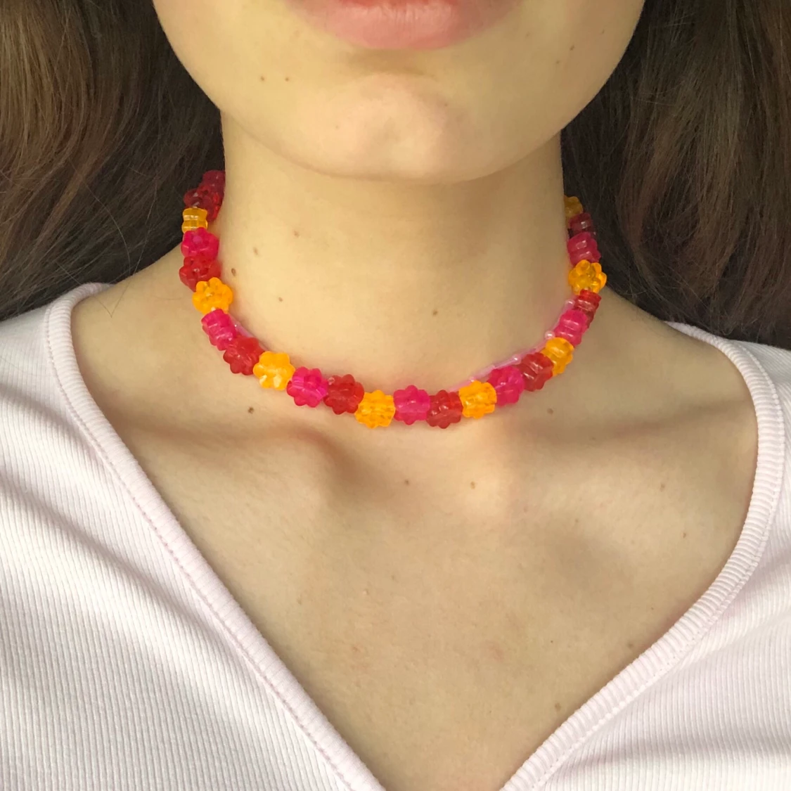 Halsband gjort av pärlor jag hittat secondhand. Jättefint till sommaren och piffar upp ens outfit! Frakt tillkommer<3