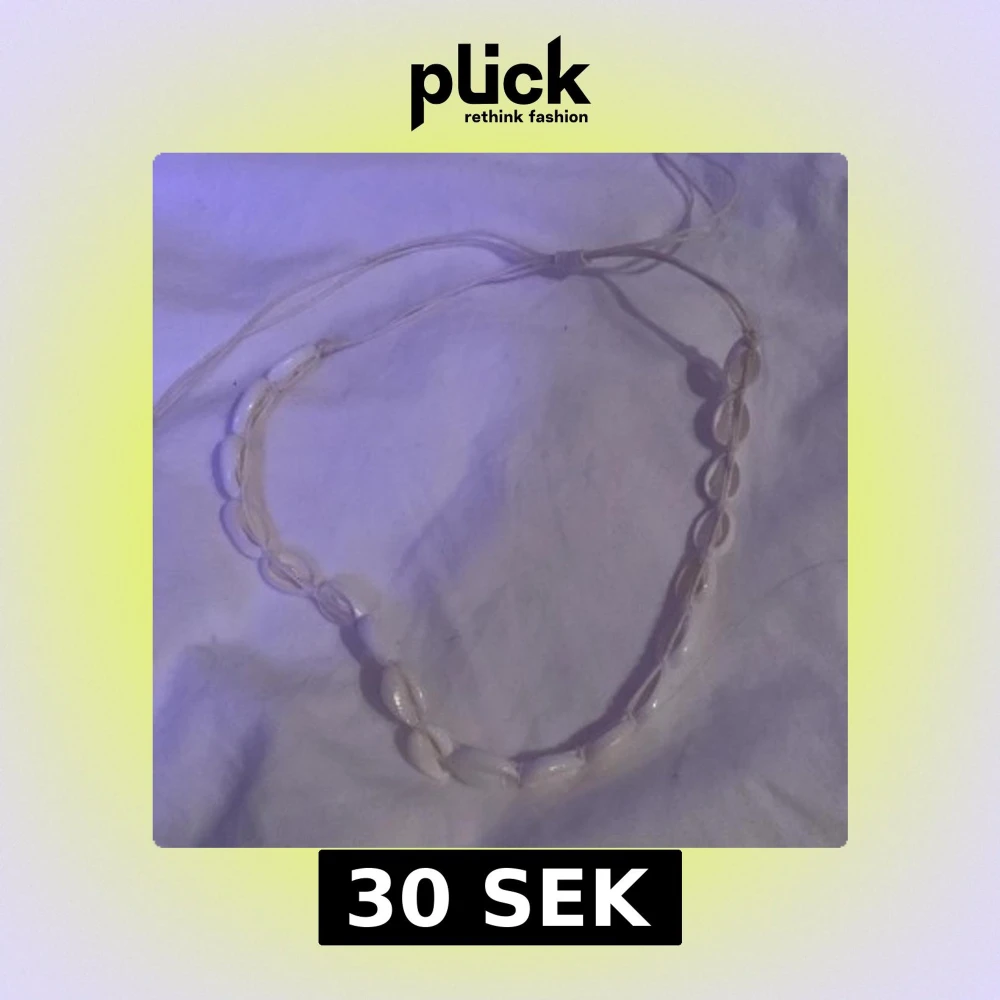 Säljer ett stilrent vitt halsband med snäckor. Perfekt för en bohemisk look eller sommarens stranddagar. Halsbandet har en justerbar snörning för att passa olika storlekar. Enkelt men elegant tillägg till din smyckessamling.