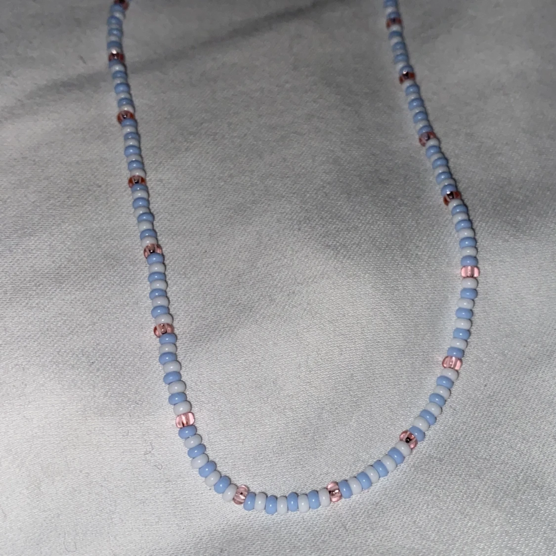 Egengjort halsband med små pärlor och elastisk tråd. Jag gör ett nytt till varje beställning, så det går att få en annan längd eller andra önskemål🌟