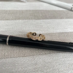 Guld ring med små glansiga diamanter, ingen storlek då den är justerad