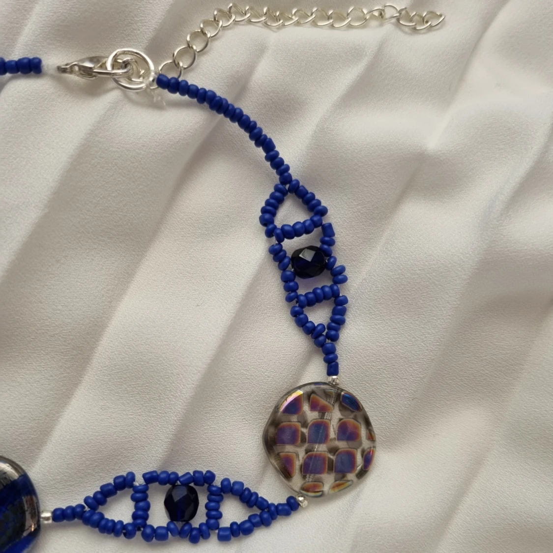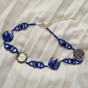 Handgjort justerbart halsband med blåa glaspärlor. Skriv om du har frågor 💕