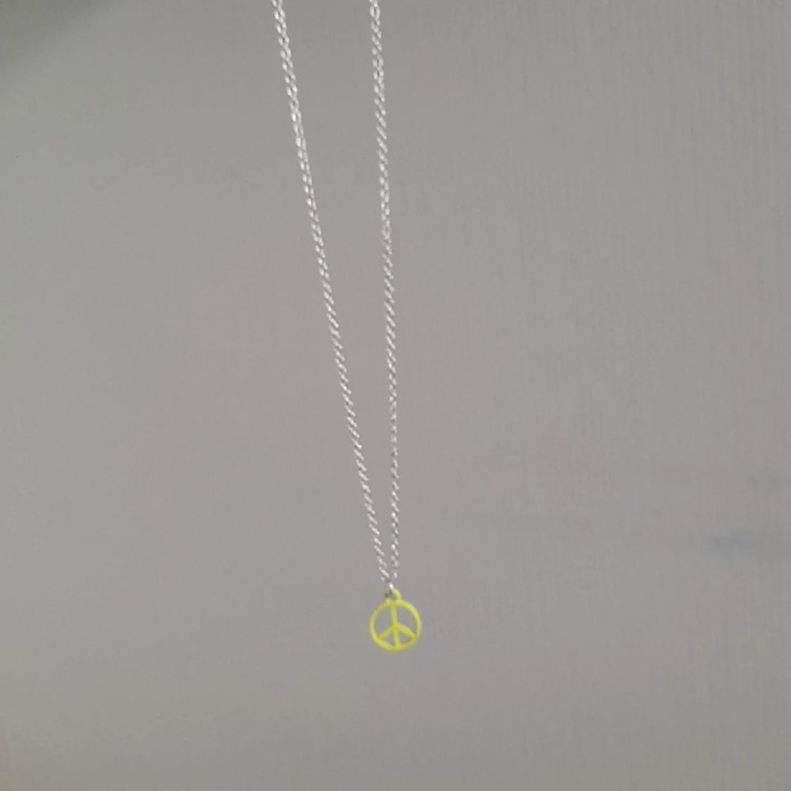 SĂ€ljer ett neon grönt/gult peace halsband! SĂ€ljer pga att den aldrig kommer till anvĂ€ndning đ