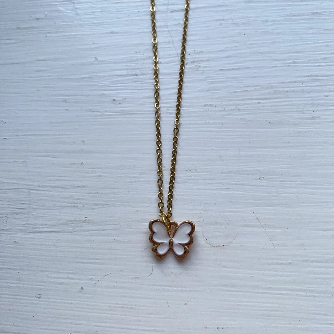 Handgjorda halsband med rosa, vit, röd eller svart fjäril, använd inte köp ni då det finns flera stycken. Skriv gärna om du är intresserad❤️