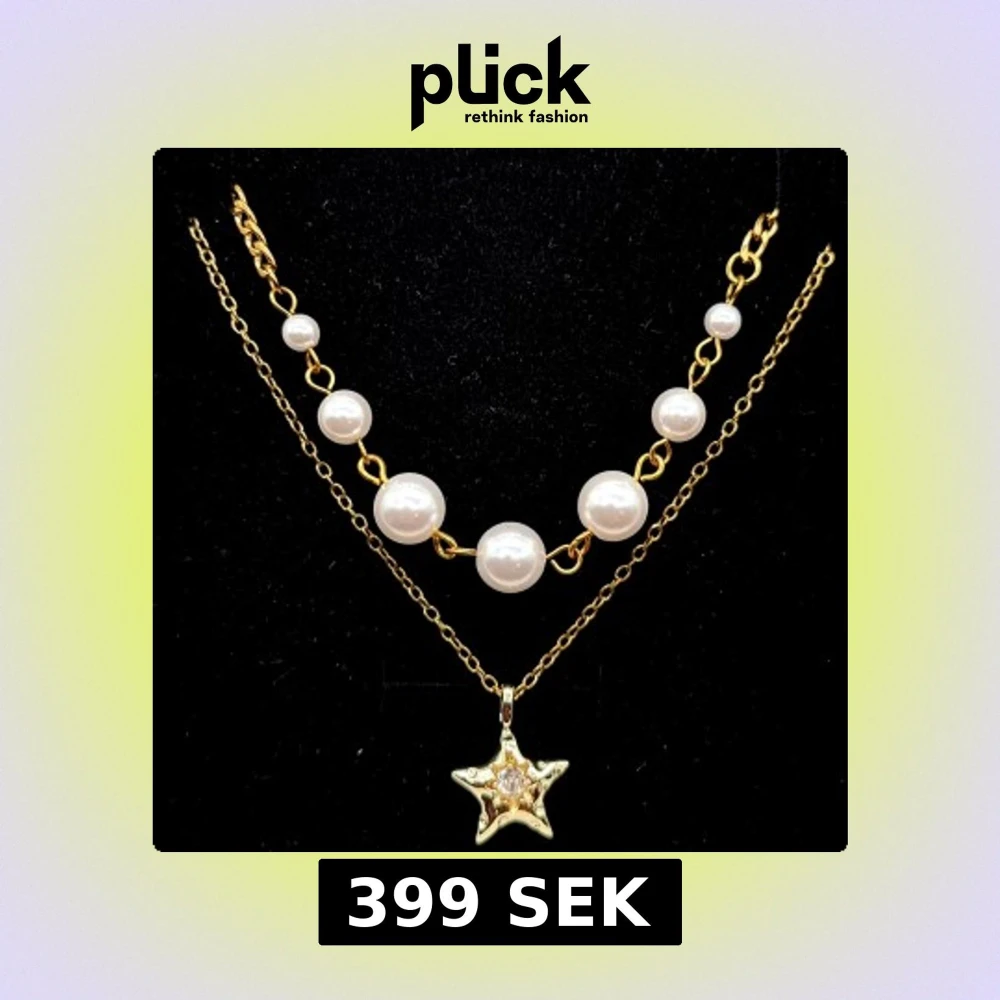 Material-rostfritt stål. Stjärna 14K guldpläterad,1,8cm. Halsband med pärlor längd-40cm. Kan köpa separat.