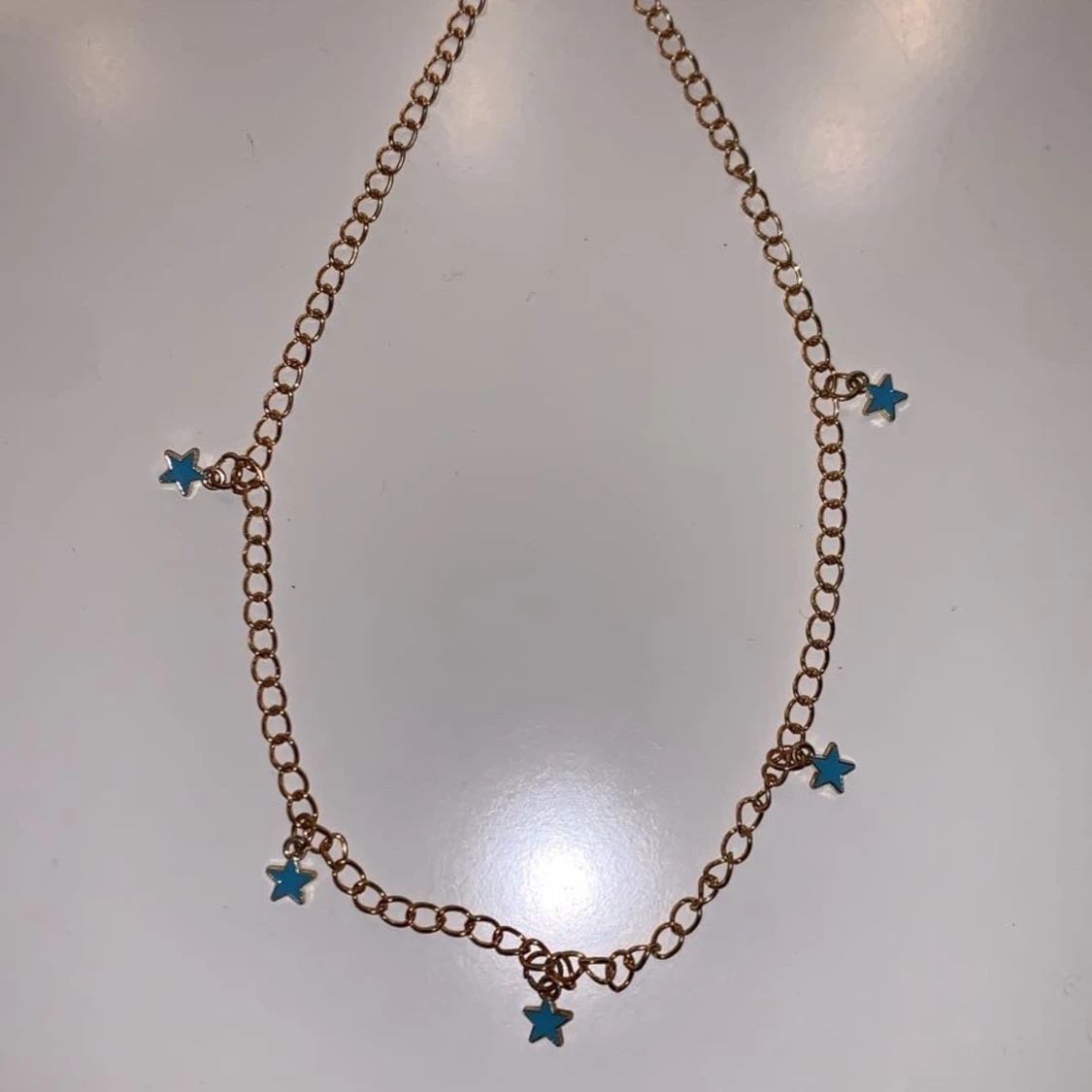 Ett helt nytt halsband med berlocker med blåa stjärnor Ny pris är: 25 kr