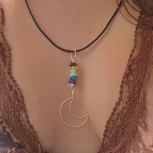 Kristall halsband av silver med Γ€kta lΓ€derkedja