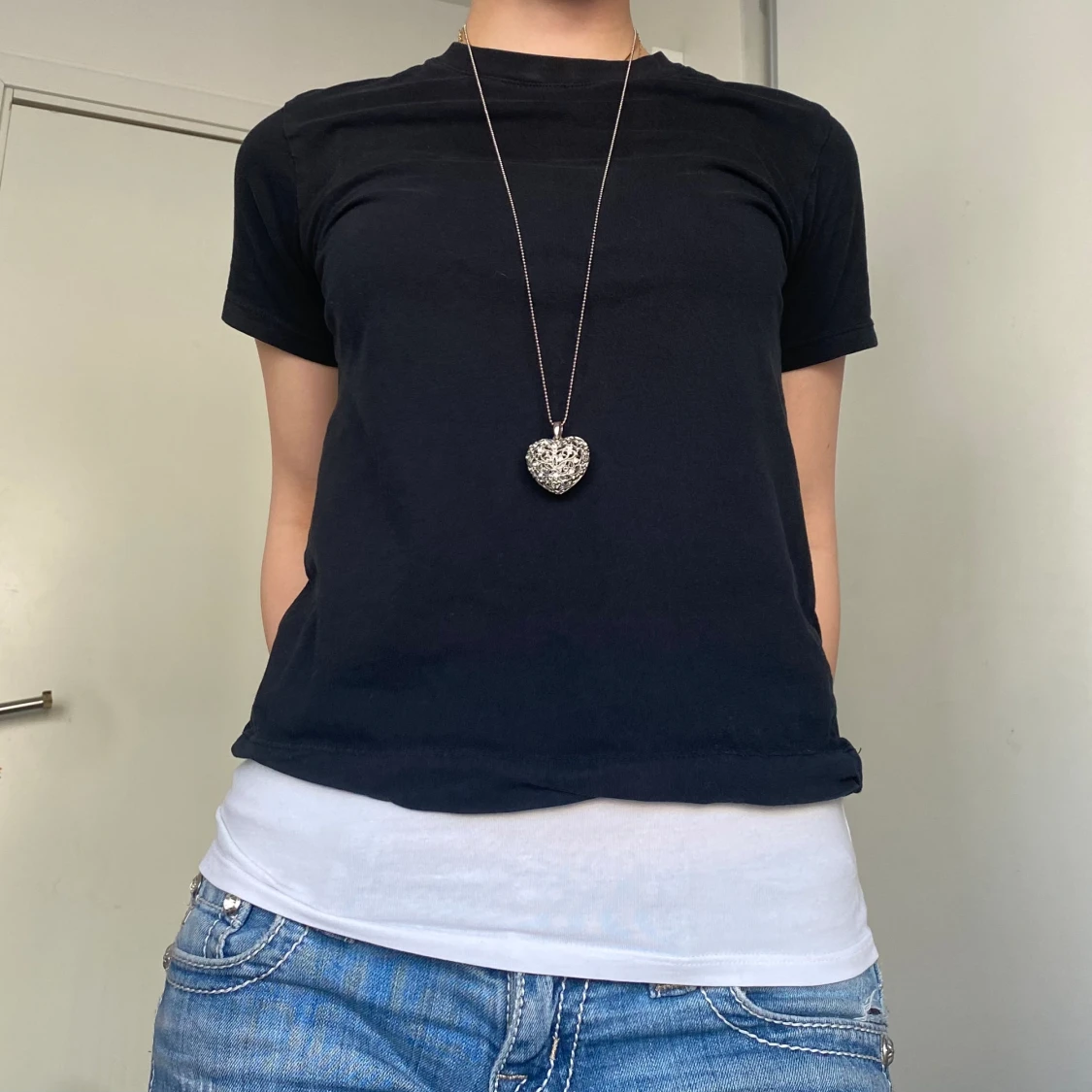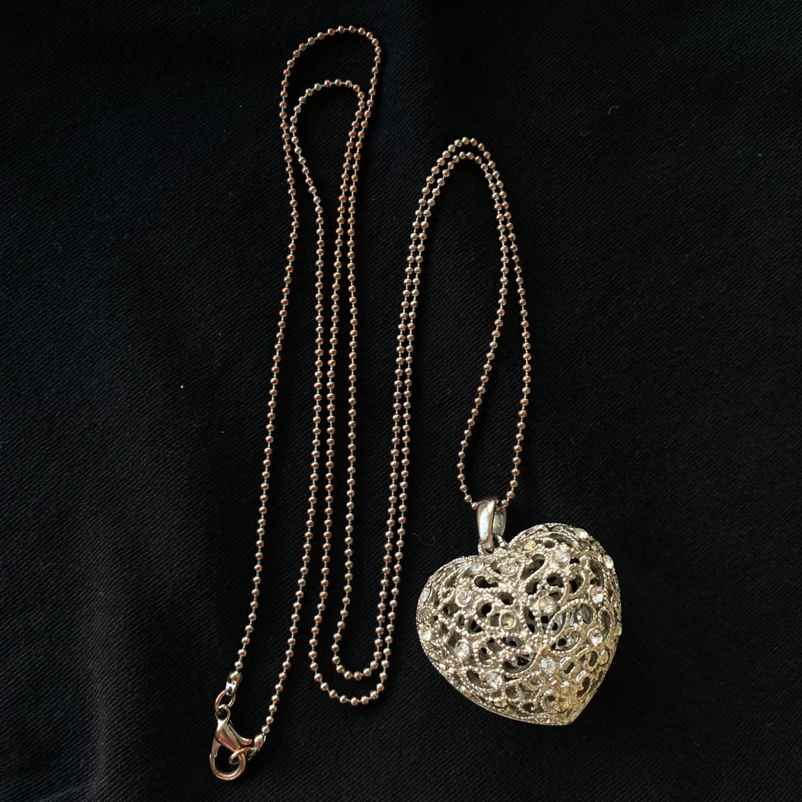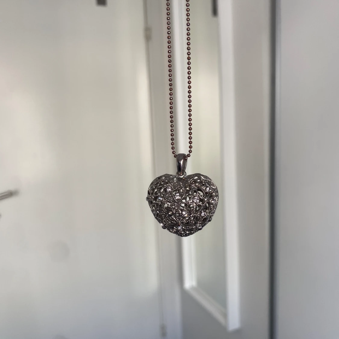 Långt silverfärgat hjärthalsband. Kedjan har tappat lite färg (se bild 4) men själva berlocken är i bra använt skick. Skriv privat vid frågor💗