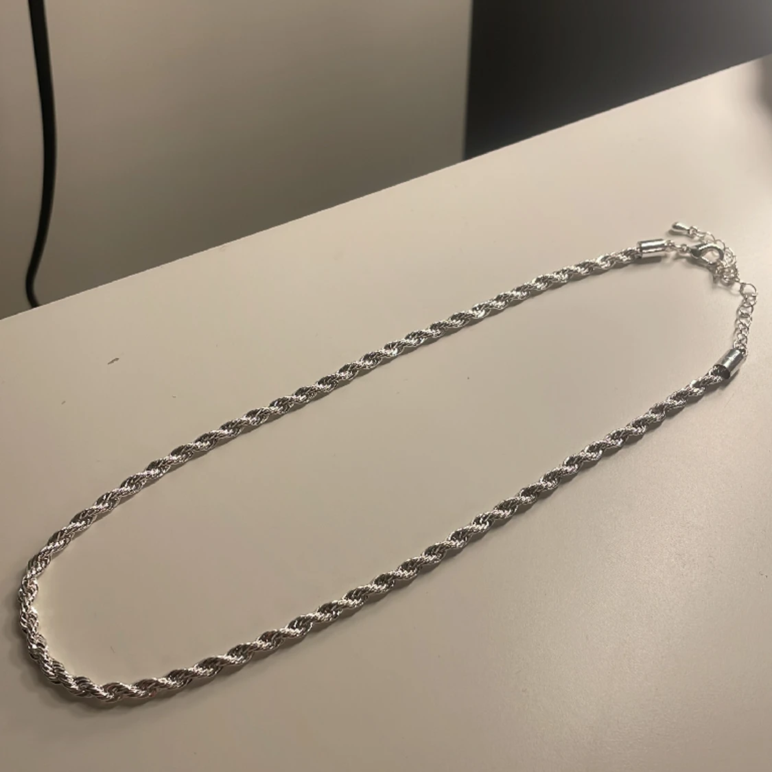 Halsband/kedja i fejksilver⛓️🗿 49 cm som längst, 40,5 cm som kortast.