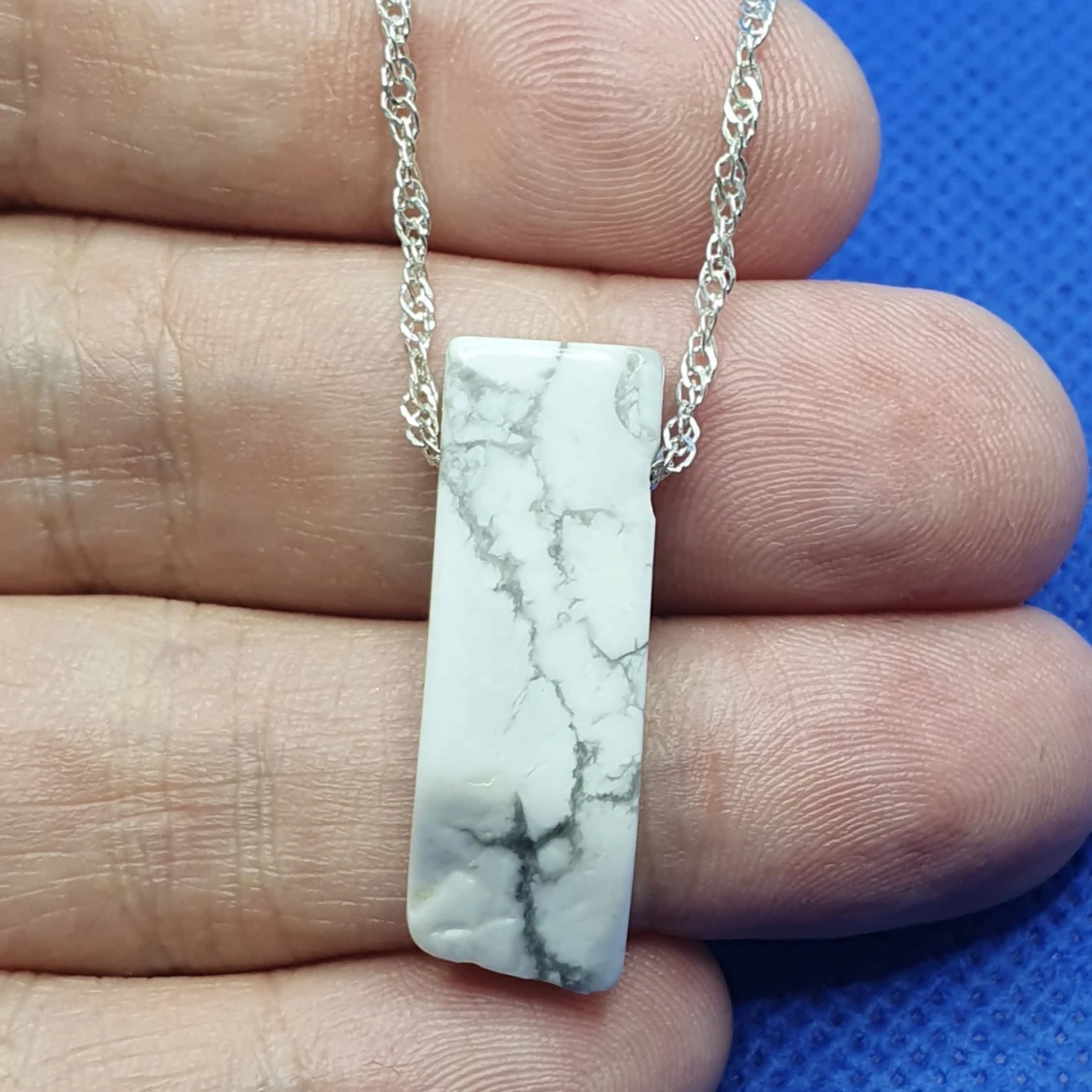 Halsband med howlit stenhänge oanvänd. Mått på kedjan är: 42 cm och stenen är 3.1 cm. ✨️Titta igenom alla mina upplagda och köp fler saker i bundle för att spara på frakten och få allt du köpt i ett och samma paket✨️