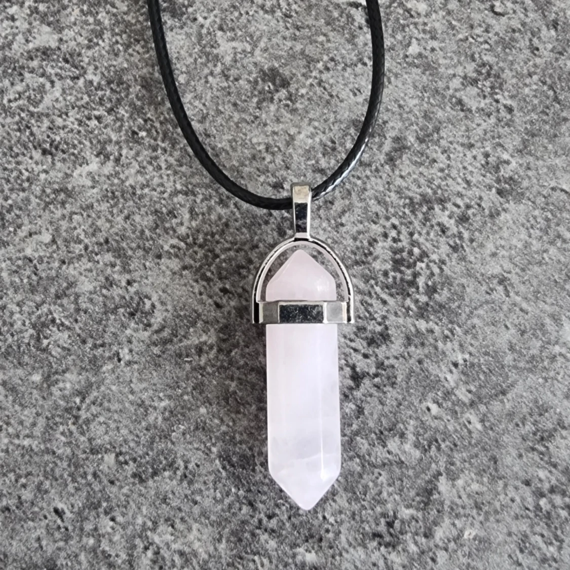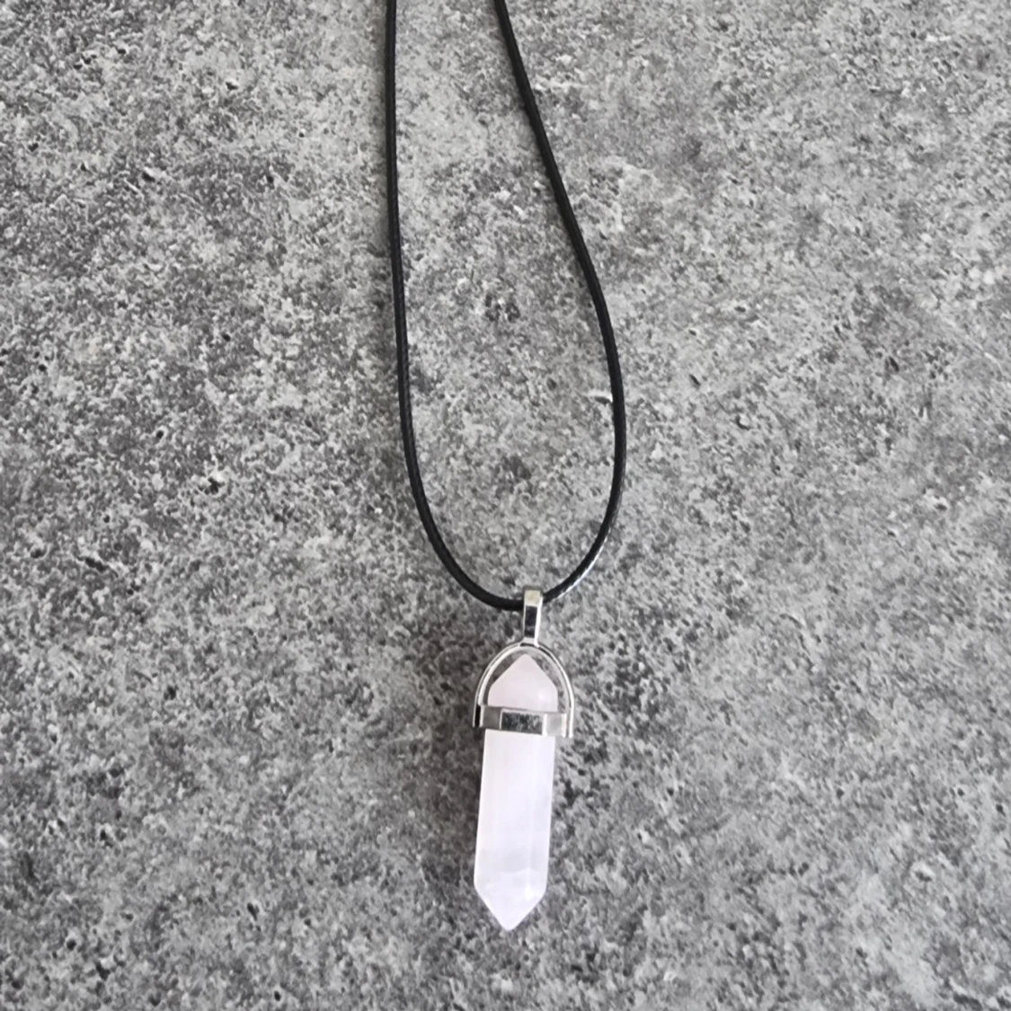 Hänge med halsband i läder liknande material samt liten kedjedel. Smyckes storlek: ca 41mm x 13mm Kedjestorlek: ca 45cm - 50cm Observera att ditt smycke kan skilja sig något från bilderna på grund av naturliga material.🎈Fri frakt❤️