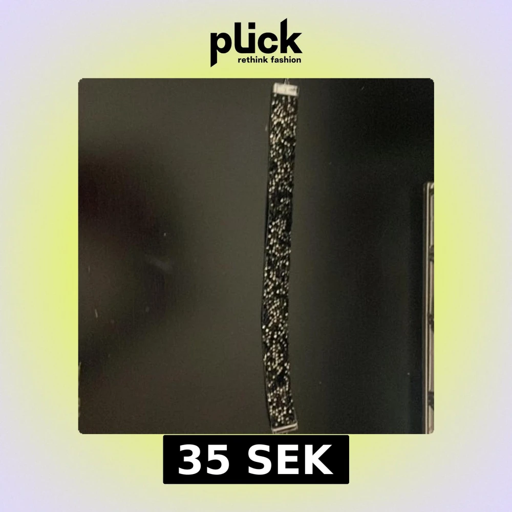 Snyggt svart choker-halsband med glittriga detaljer och silverfärgade metalldelar. Halsbandet har en bred form och justerbar kedja för perfekt passform. Perfekt för att ge din outfit extra edge och glam.