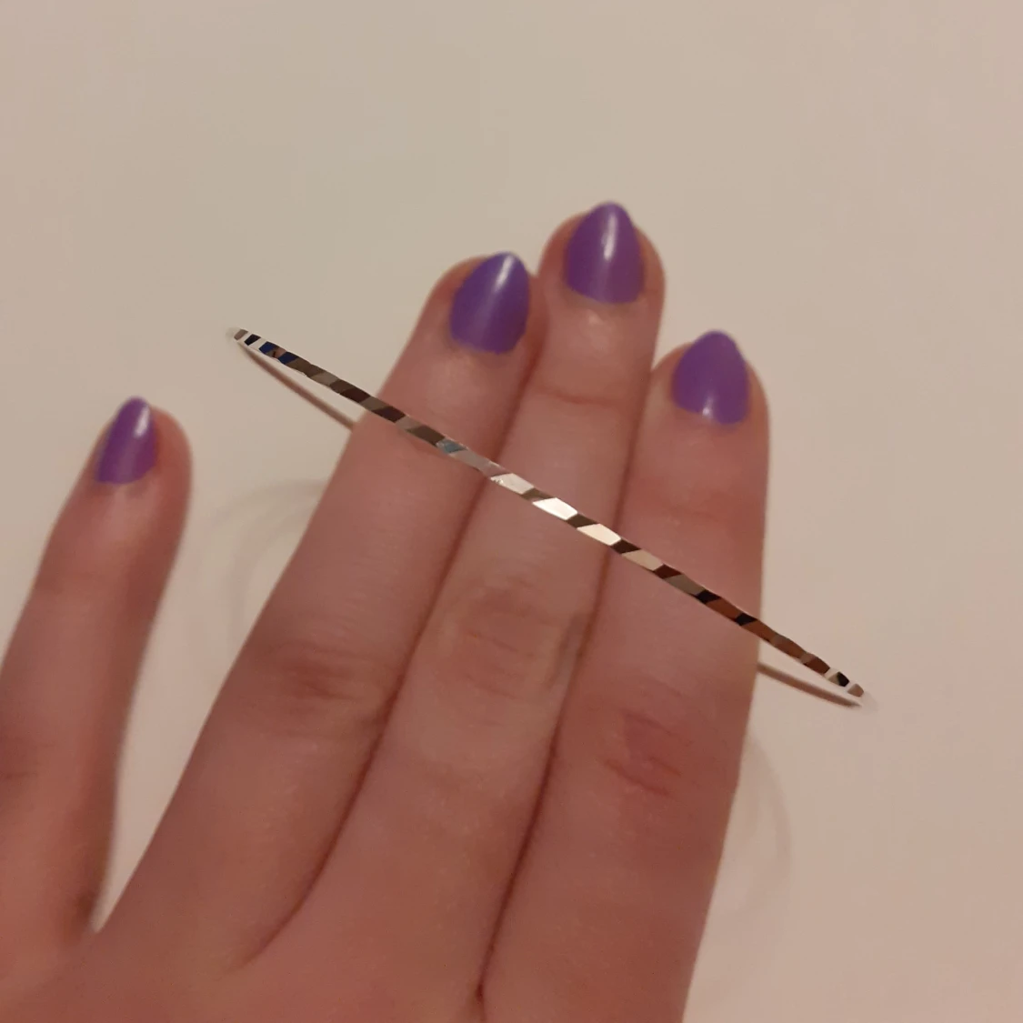 Silverarmband i nyskick. Armbandet är format som en ring och diametern är 6,5 cm