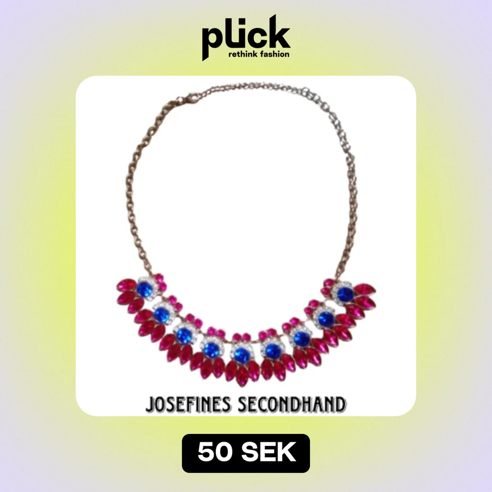 Halsband med blå, rosa och vita glaskristaller med guldkedja. Skickas med brev, frakt 15 kr. Gratis frakt vid köp av 3 eller fler smycken/accessoarer/smink prylar